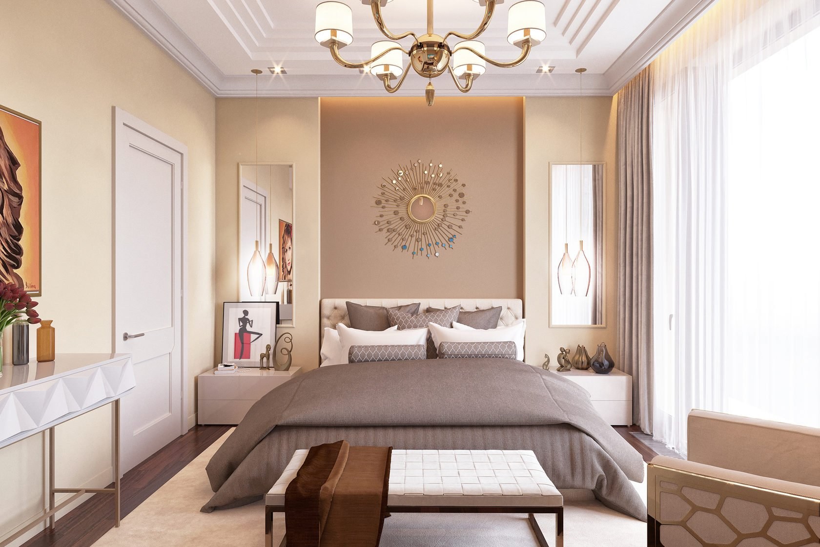 Арт деко спальня беж