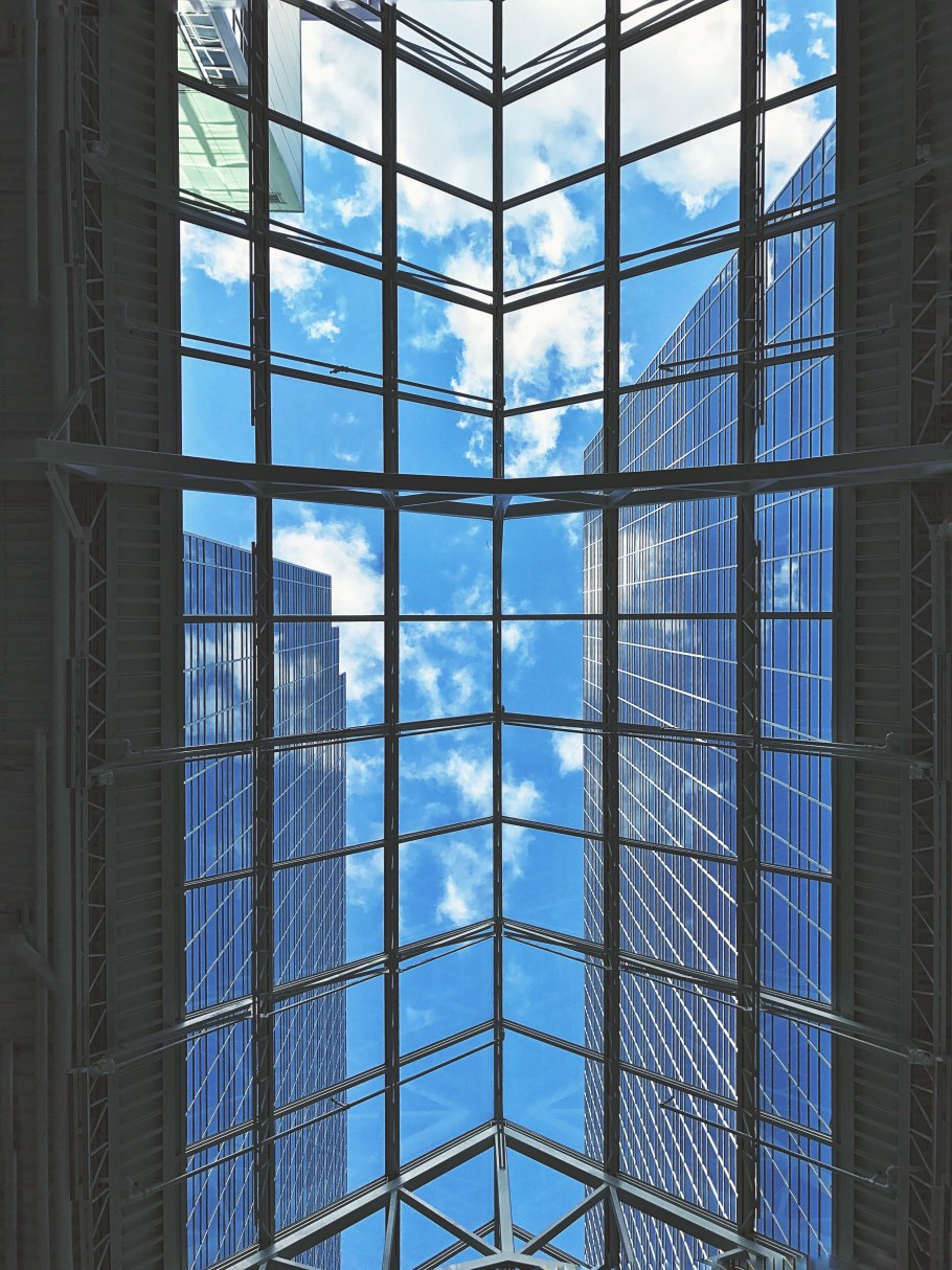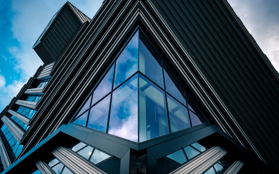 Вид из окна на стеклянный офис здание