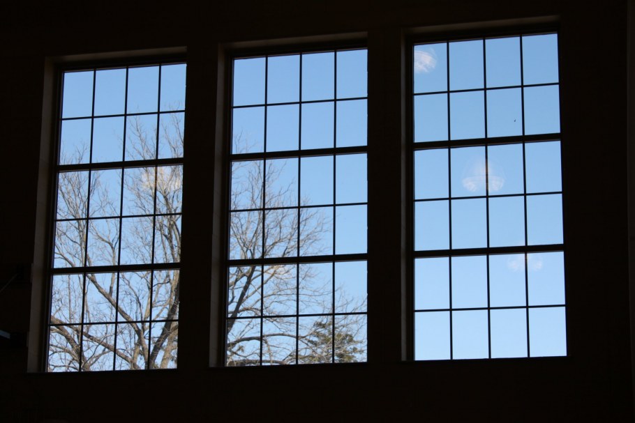 Отражение деревьев в окне