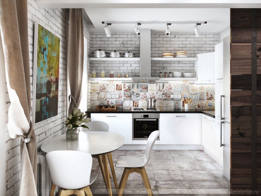 Интерьер маленькой кухни в стиле лофт (43 фото)