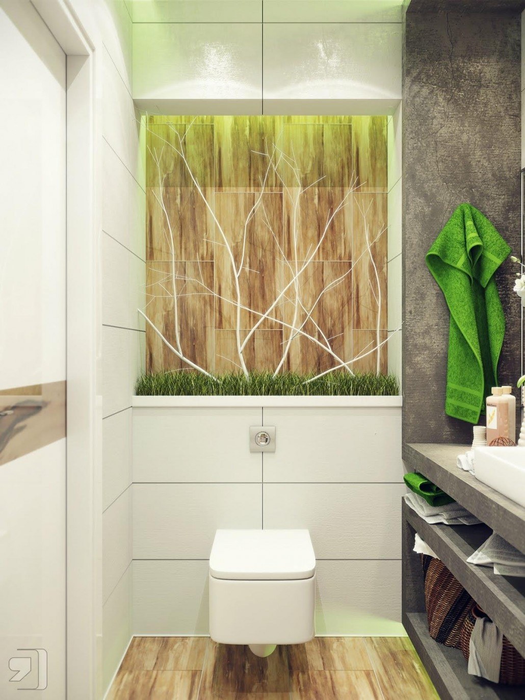 Ванная с плиткой под дерево