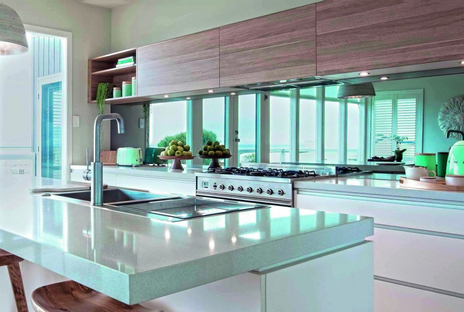Зеркальный фартук для кухни в интерьере (37 фото)