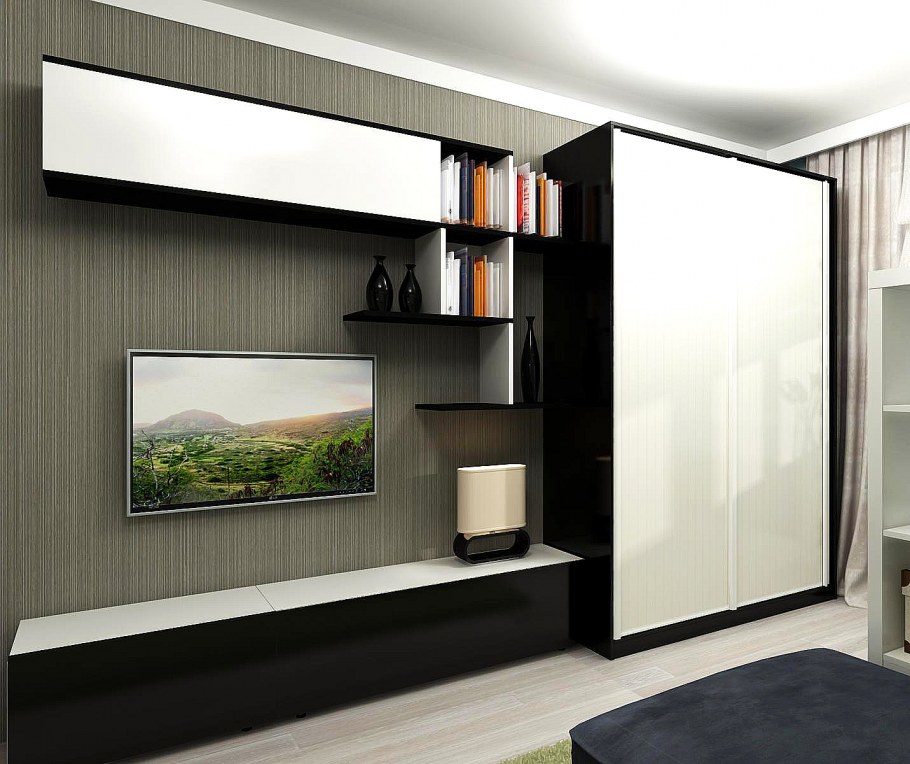 Стенка для маленькой комнаты с нишей под телевизор