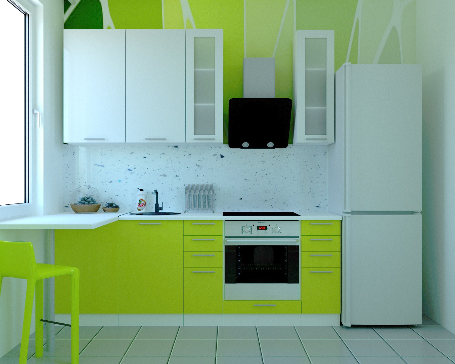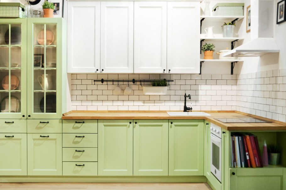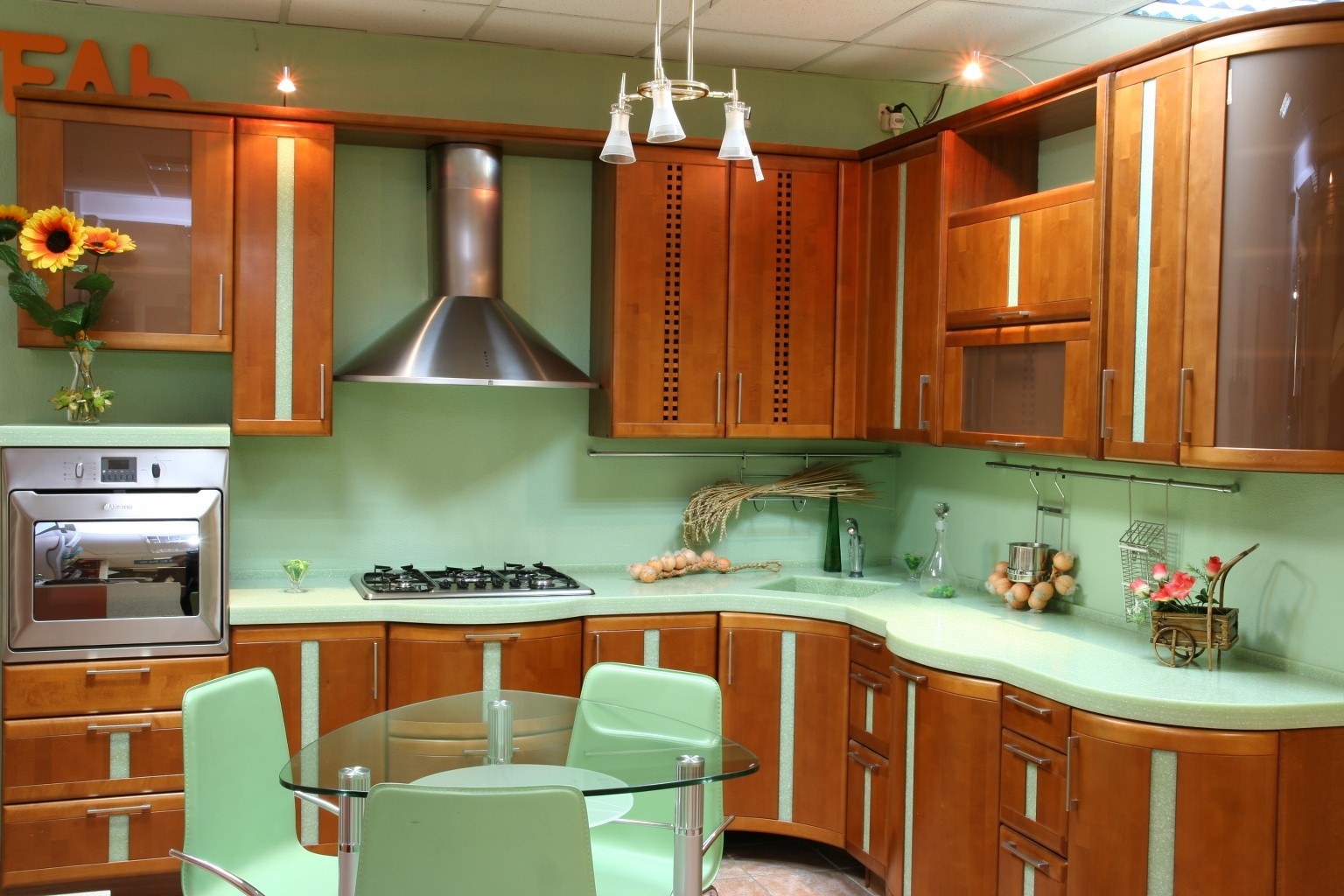 Кухня с зеленой столешницей (34 фото)