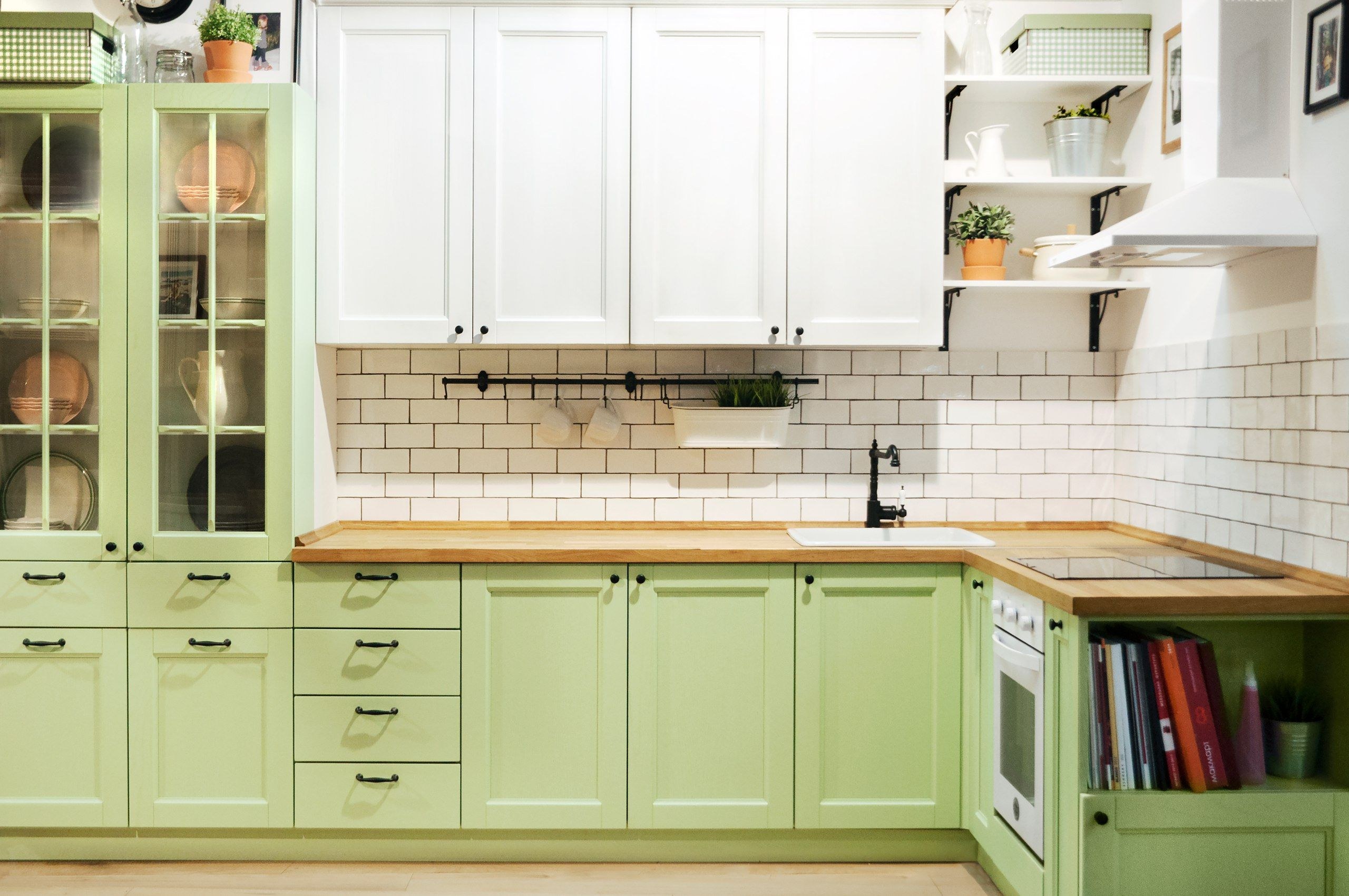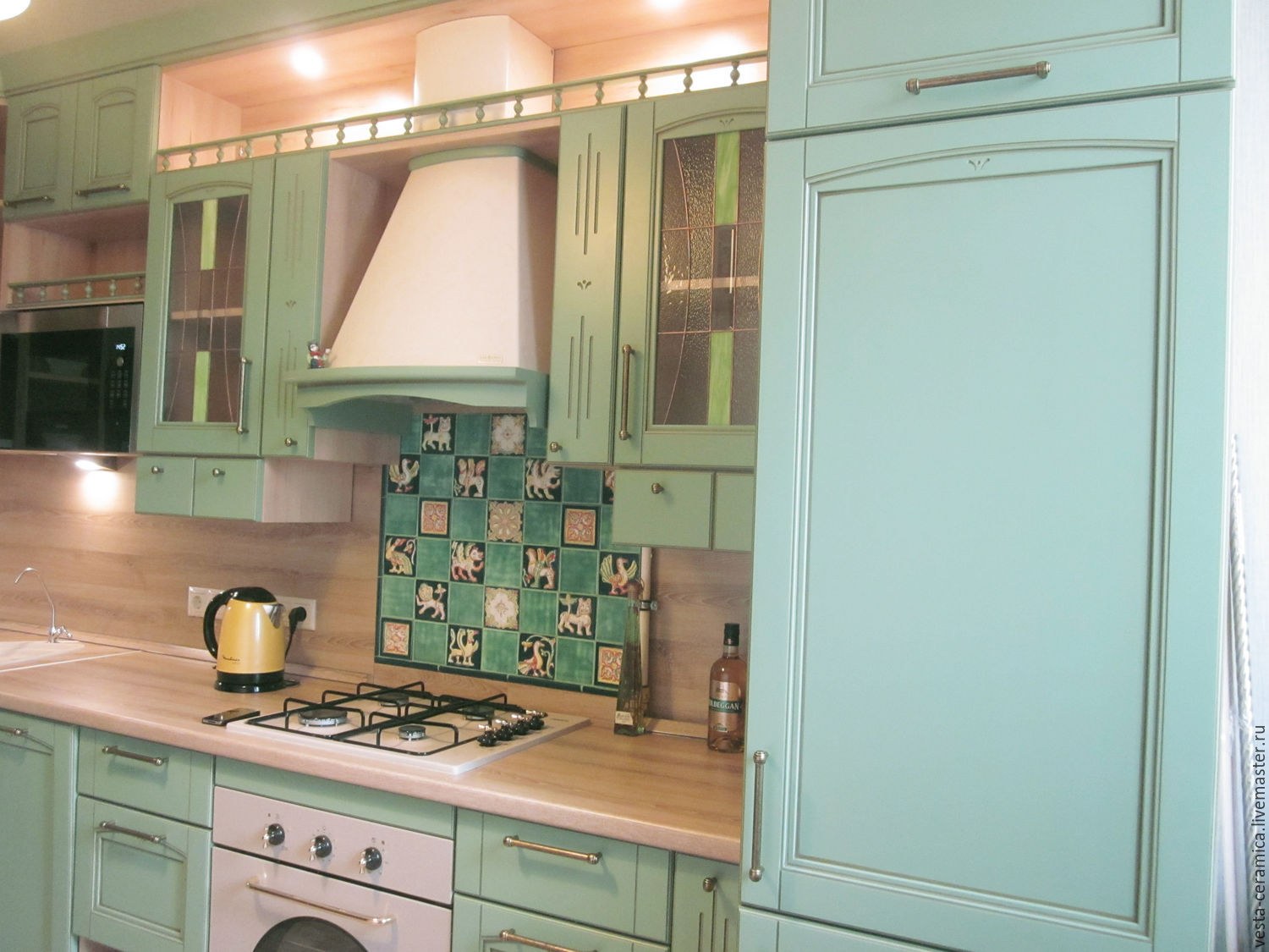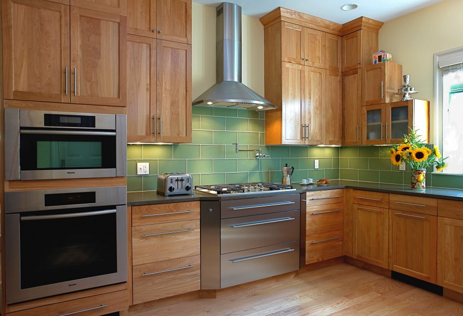 Зеленая плитка на кухне