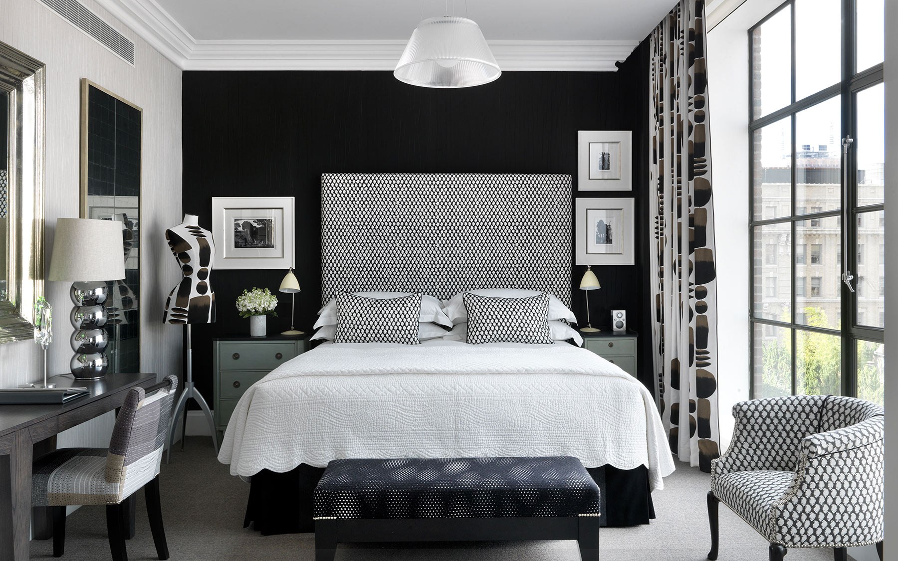 Черно белая спальня