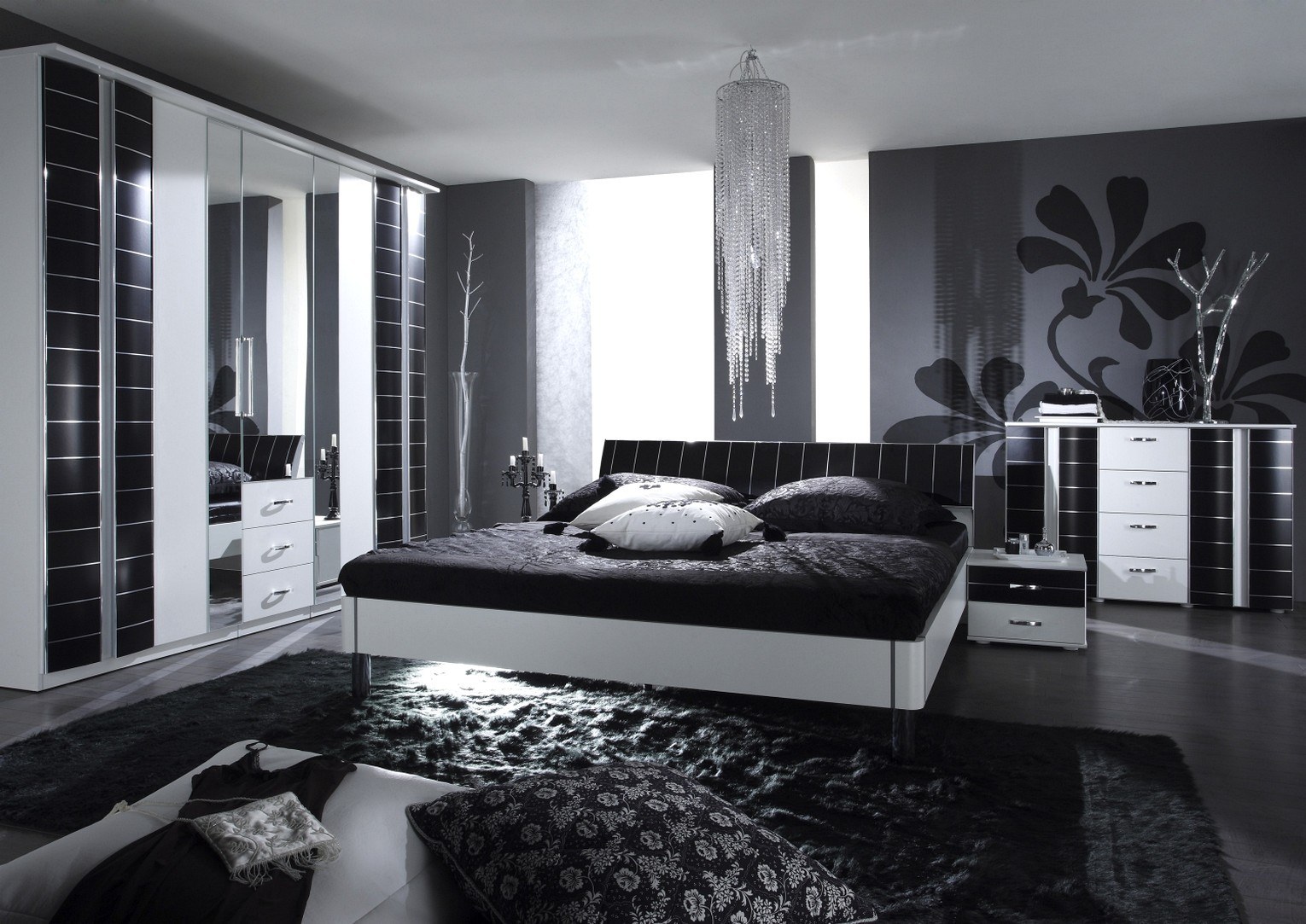 Бело черная спальня