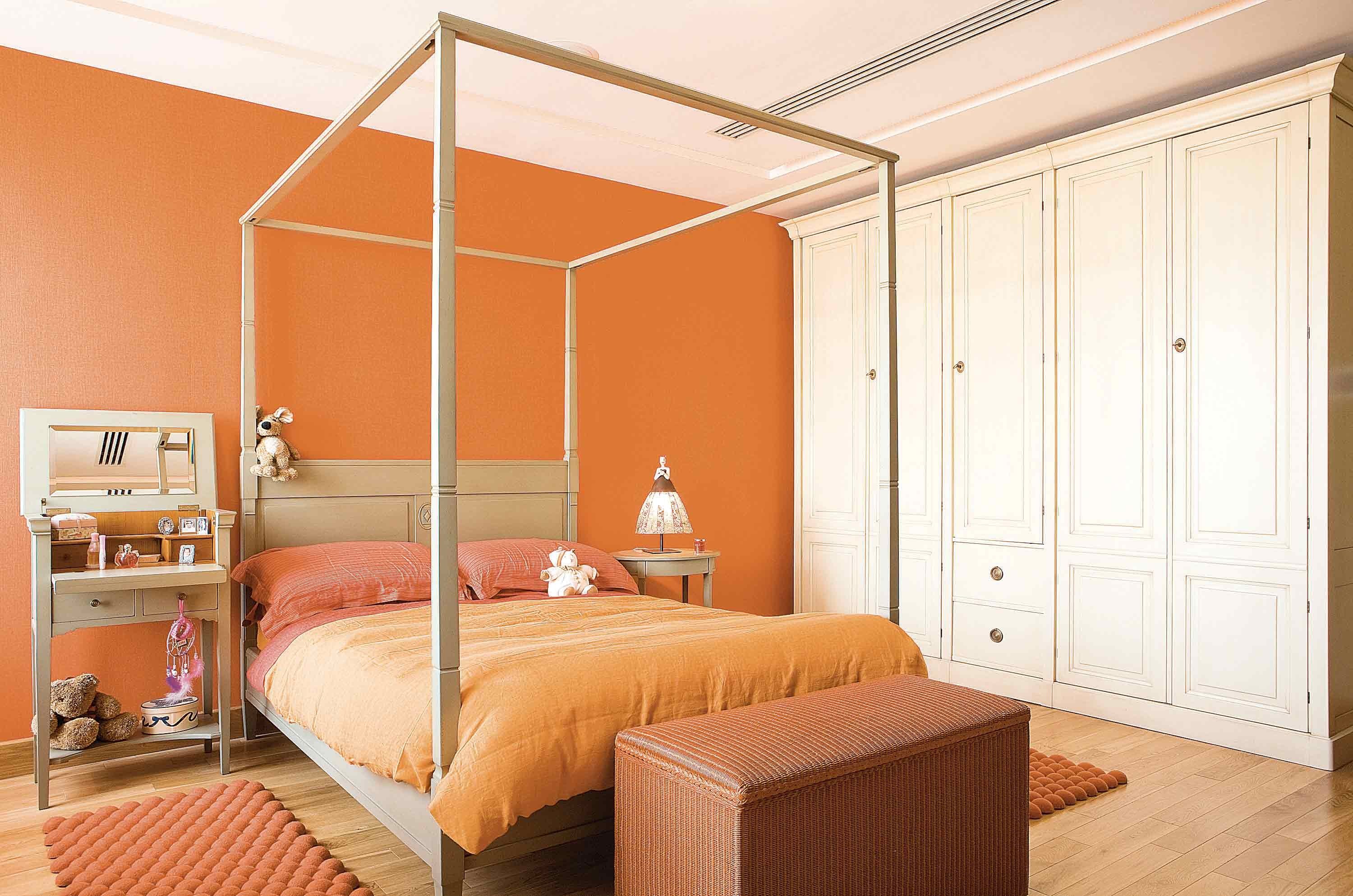 Оранжевый цвет в интерьере спальни