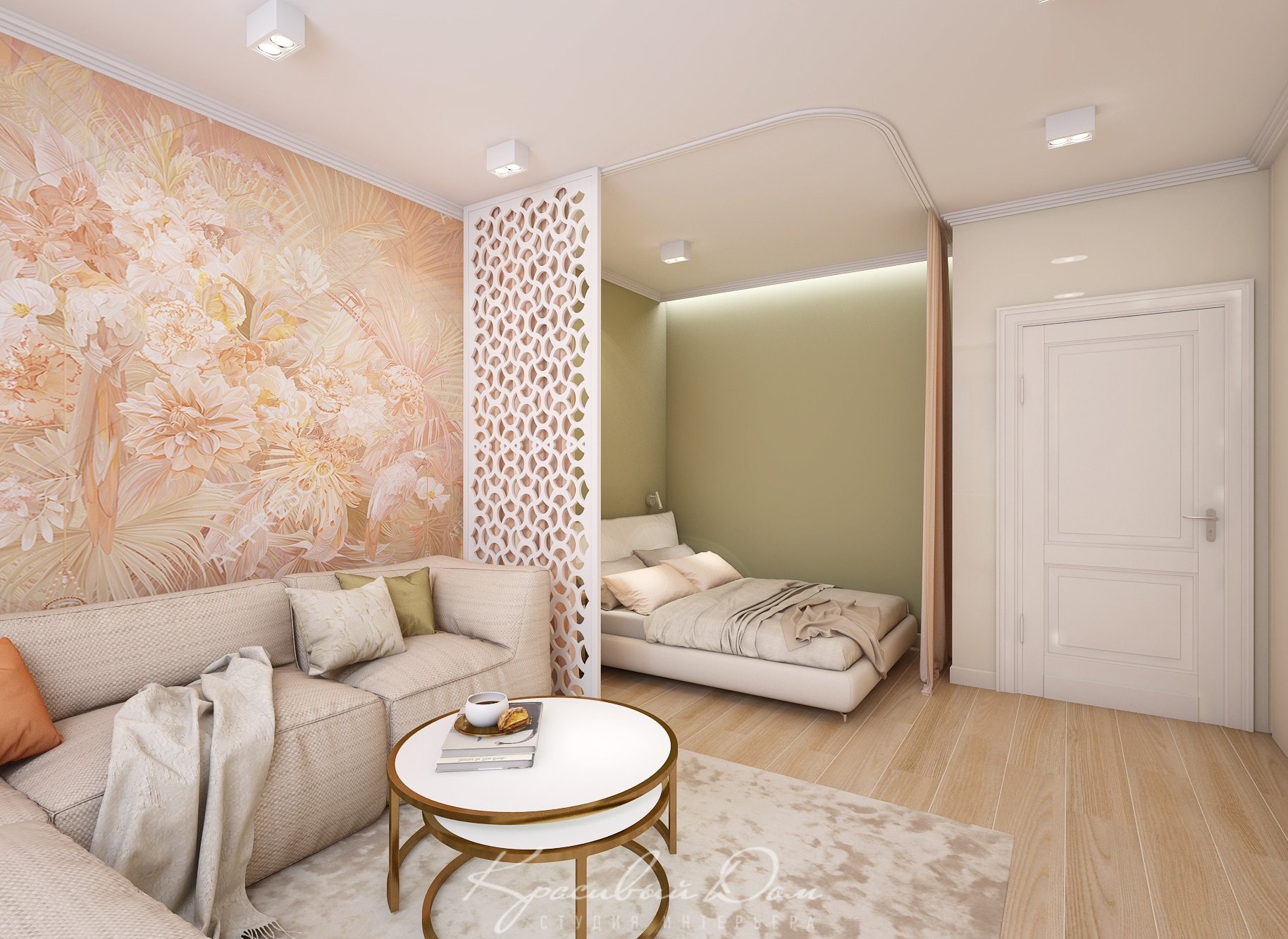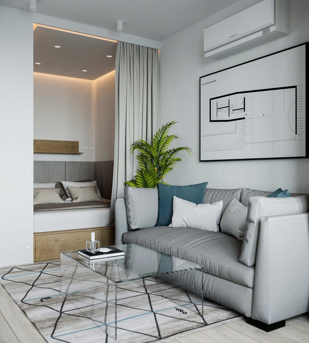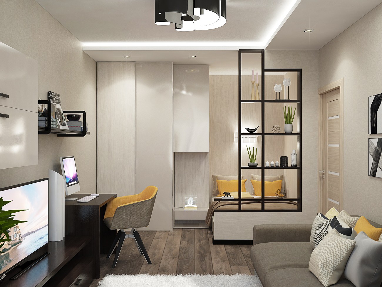 Интерьер гостиной в однокомнатной квартире 20 метров