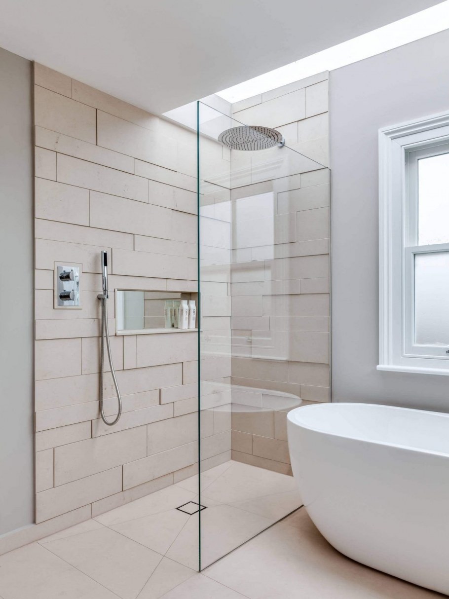 Дизайн ванной с душевой из плитки