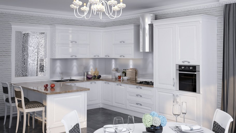 Классическая белая кухня с полубарной стойкой современная (51 фото)