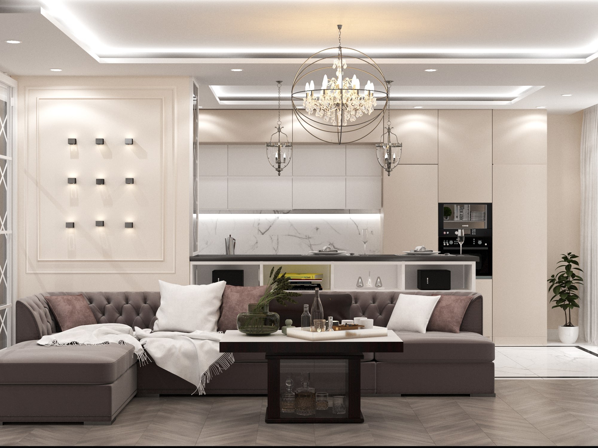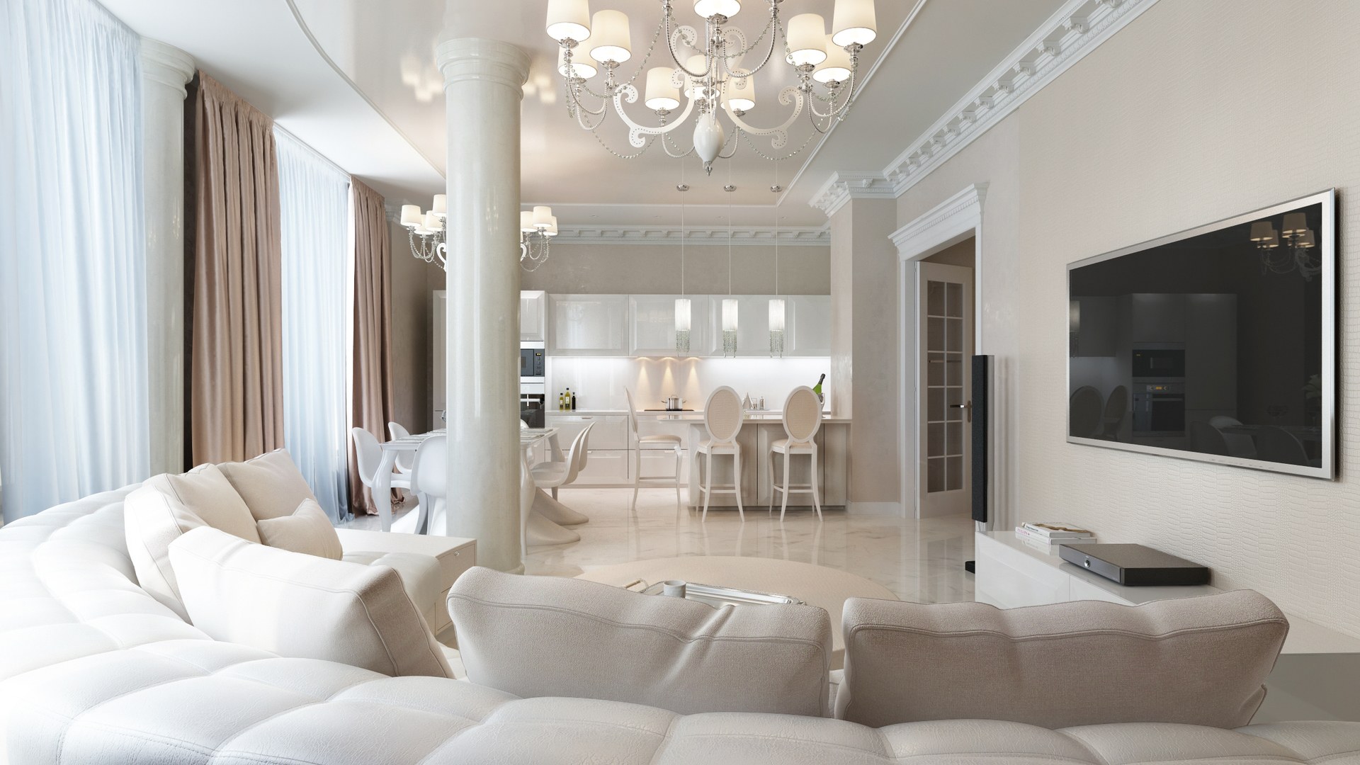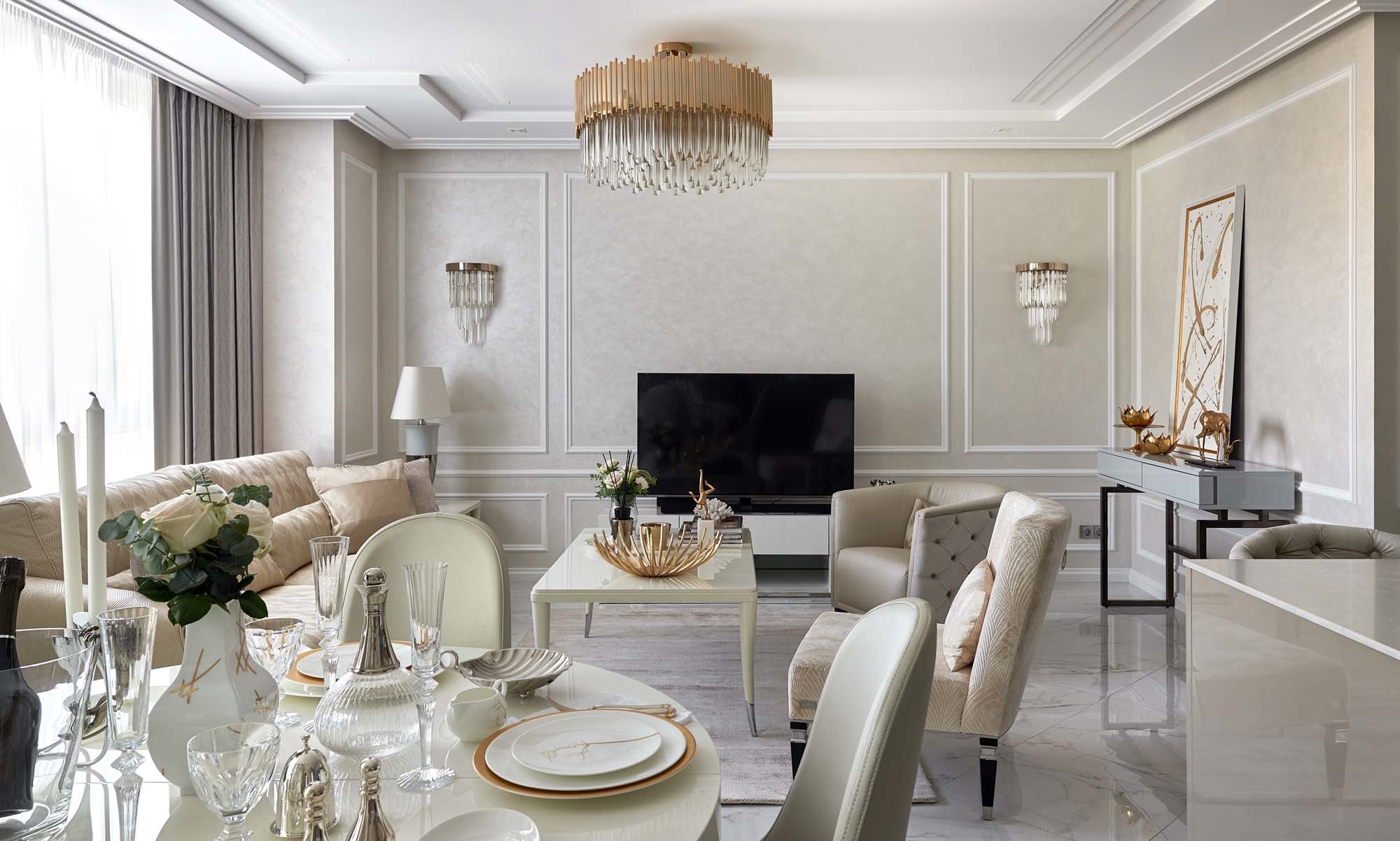 Линкруста в интерьере гостиной в стиле Неоклассика