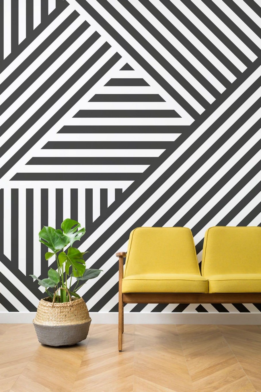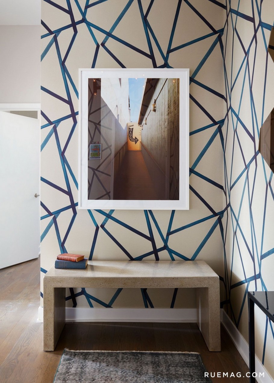 Геометрические узоры на стенах в интерьере