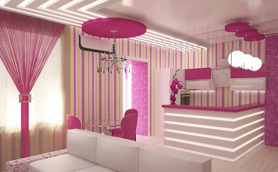 Розовый потолок в интерьере