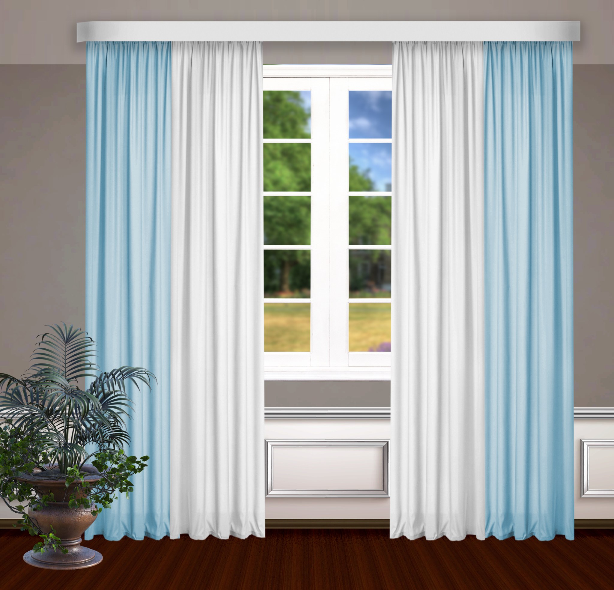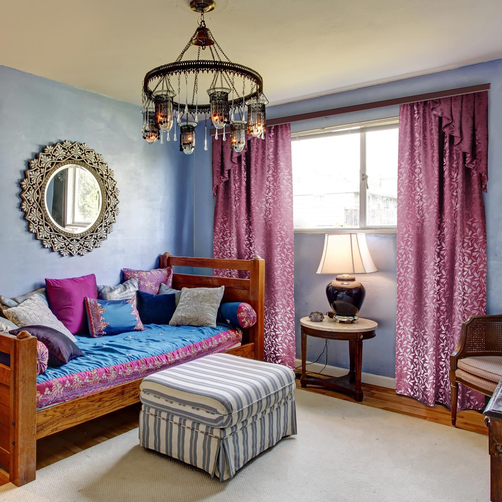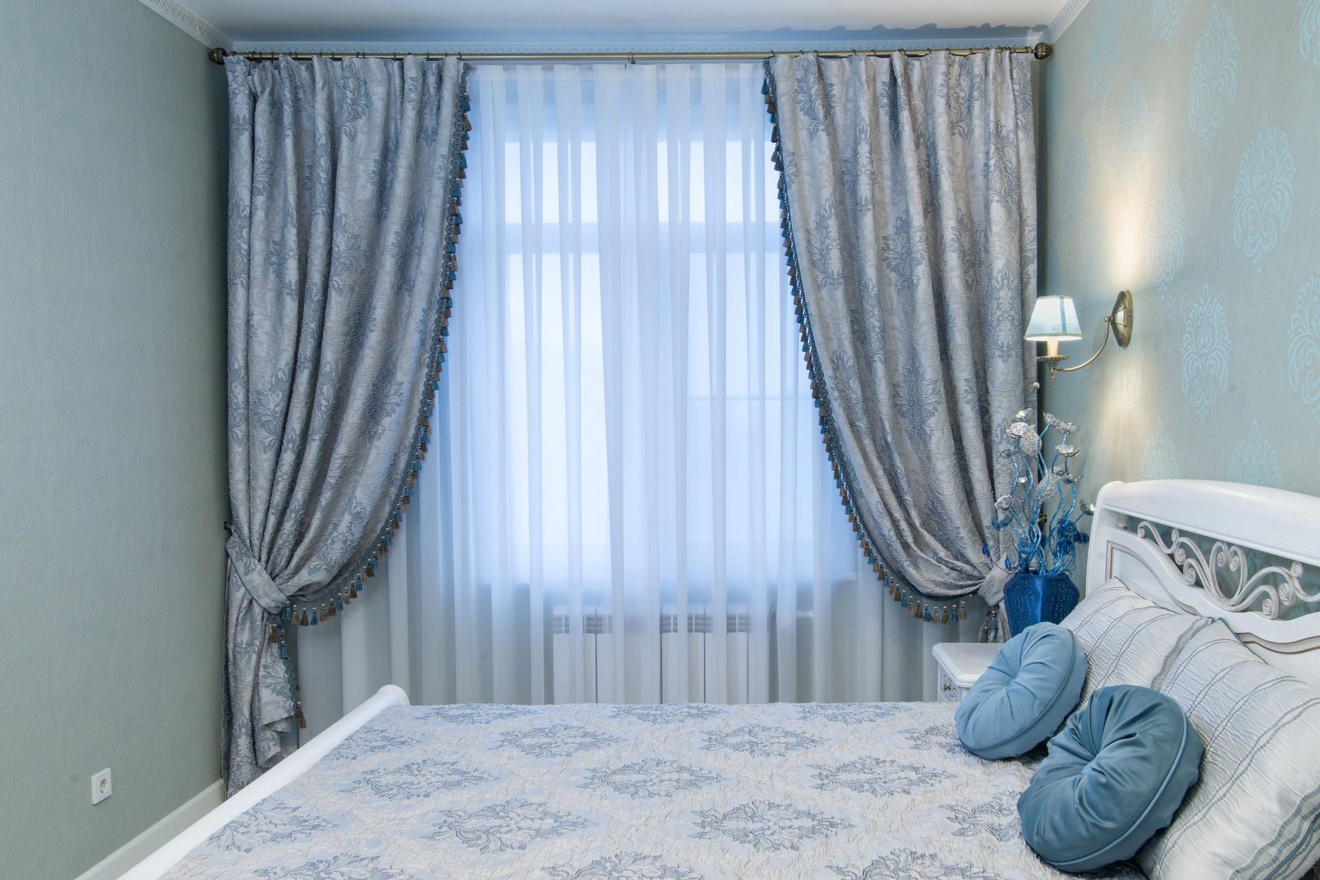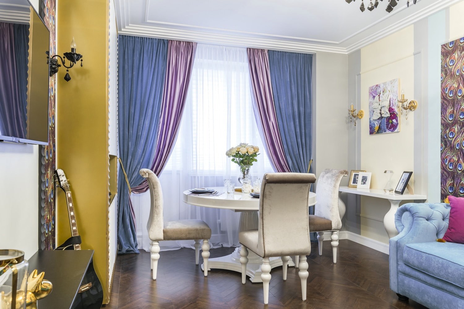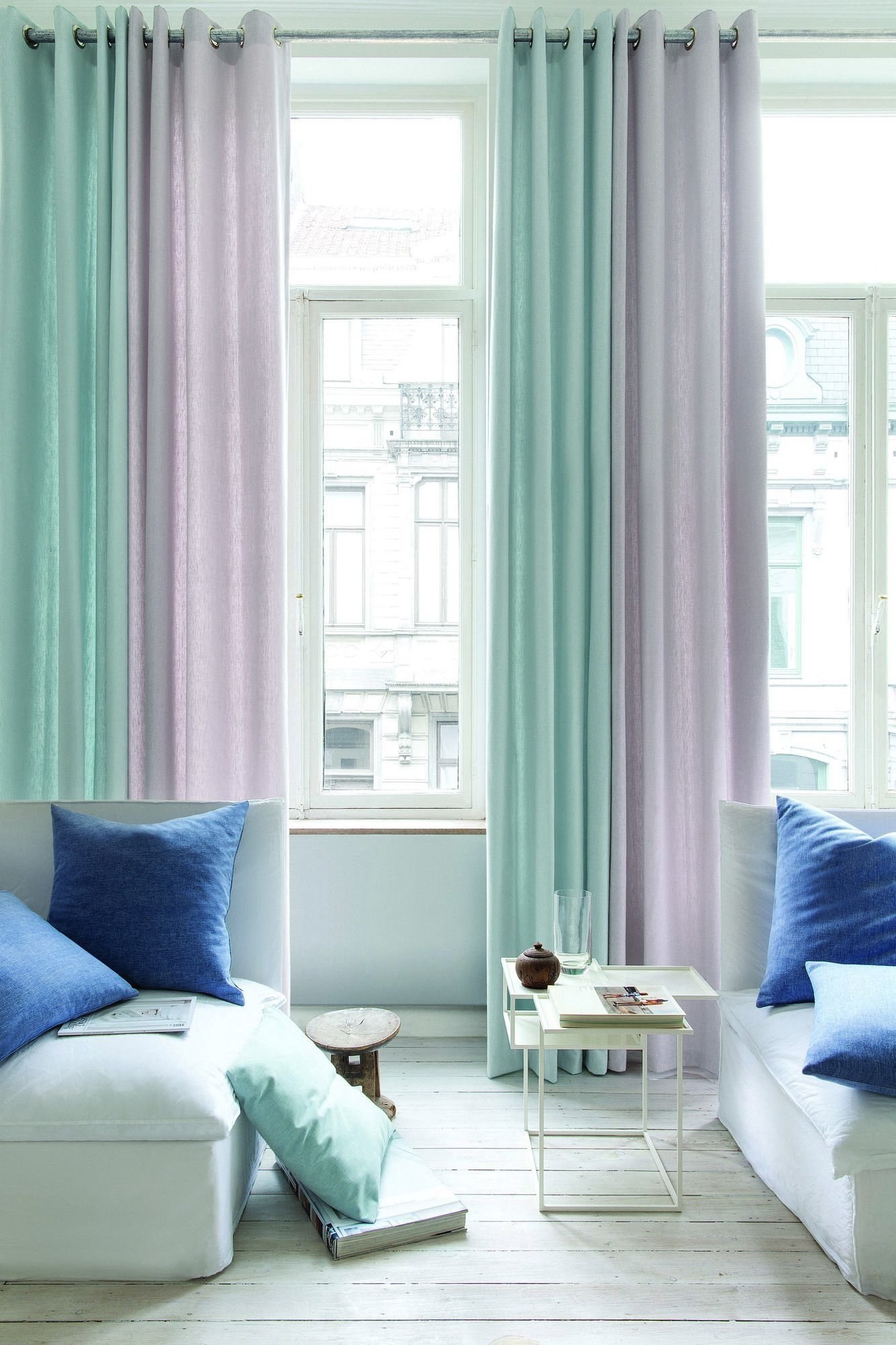 Розово голубые шторы в интерьере (31 фото)