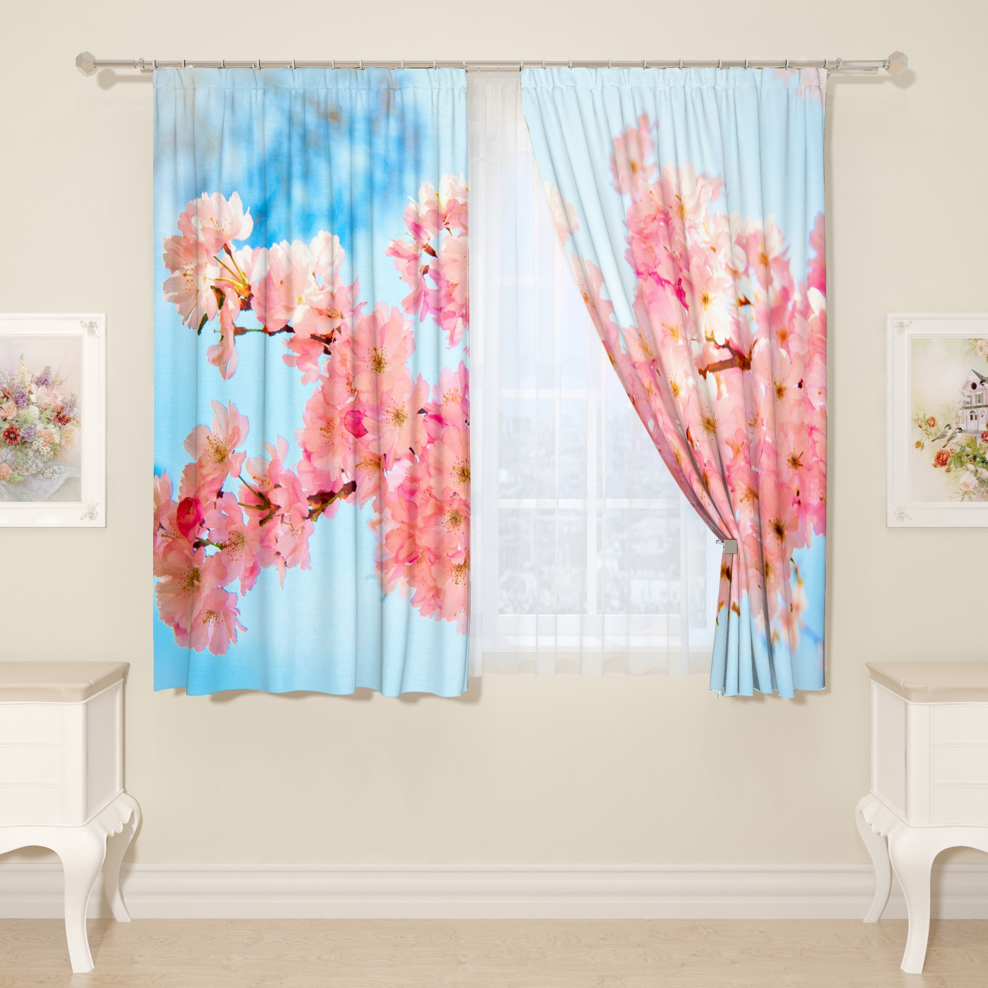 Розово голубые занавески