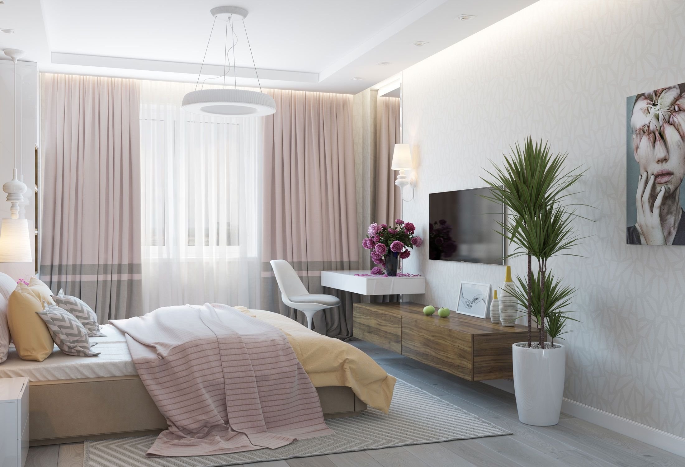 Интерьер спальни в современном стиле в светлых (29 фото)