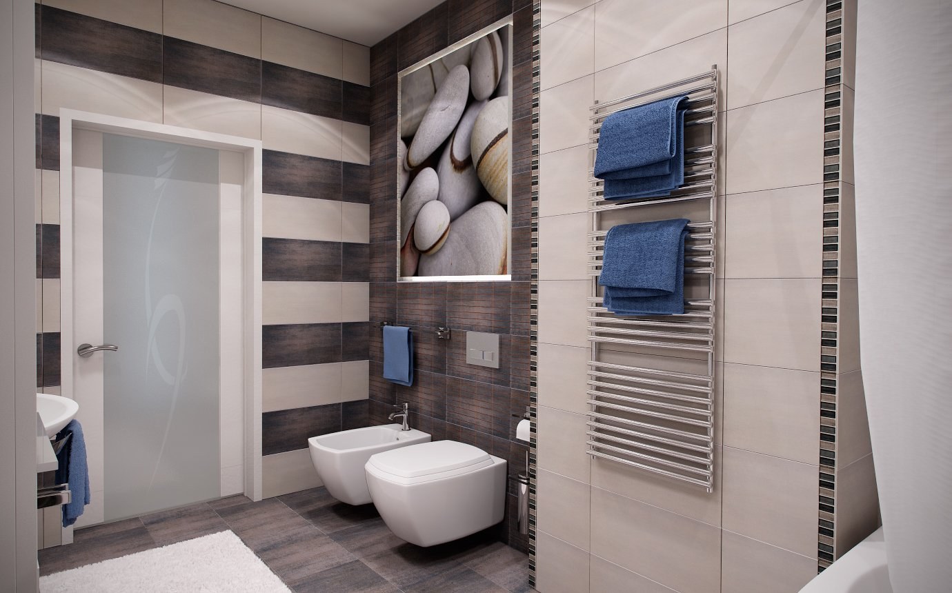 Интерьер ванной комнаты совмещенной с туалетом