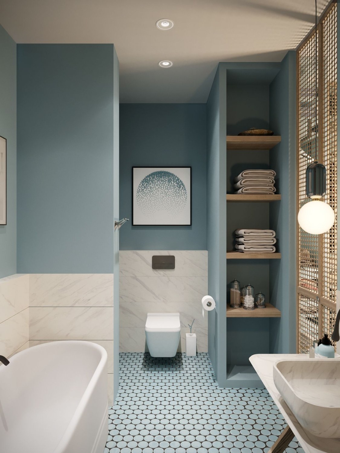 Ванная в скандинавском стиле голубая