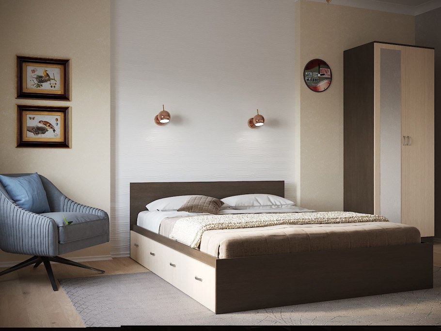 Спальня со шкафом в изголовье