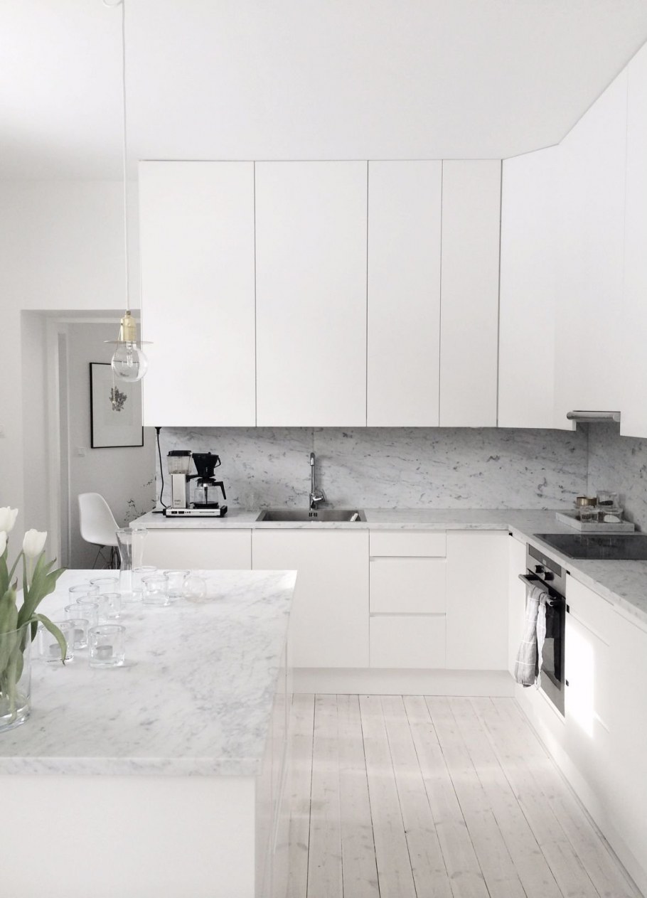 Кухня икеа белая с мраморной столешницей
