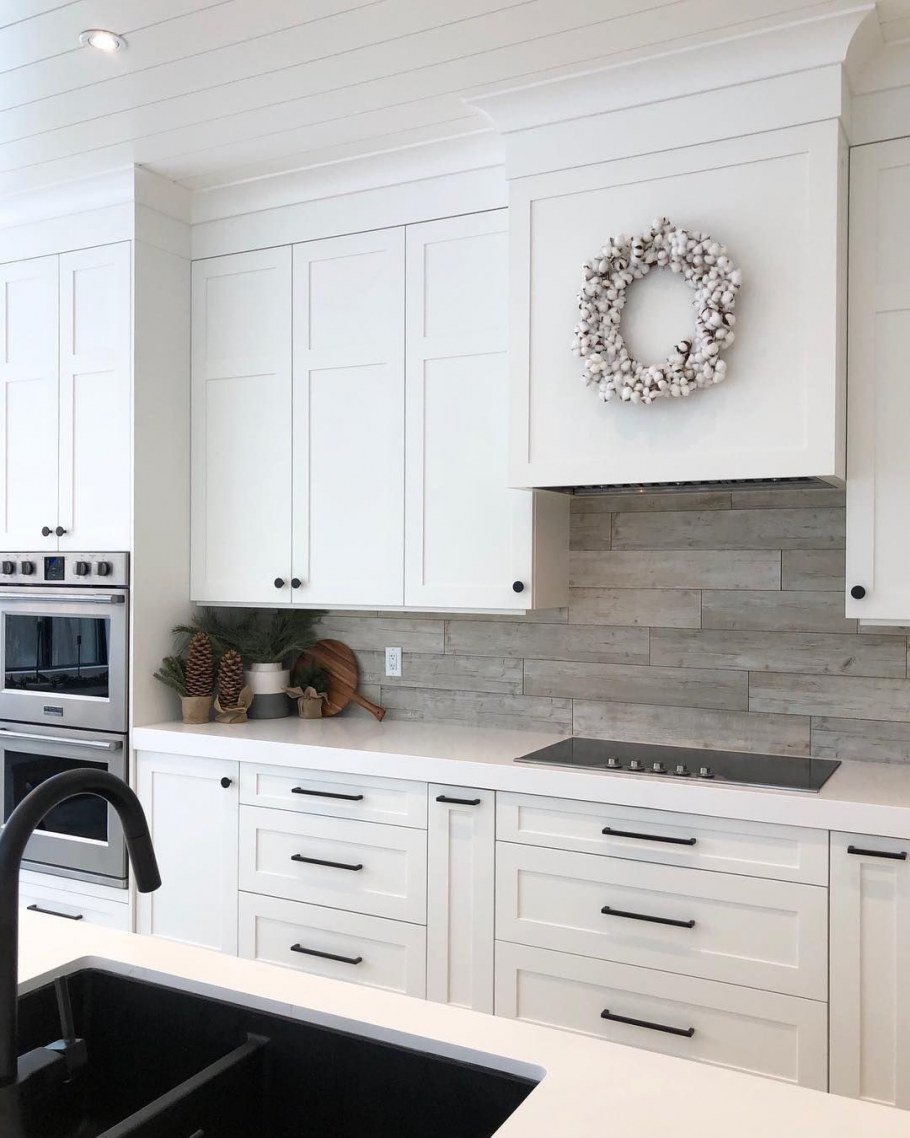 Белая кухня с черными ручками