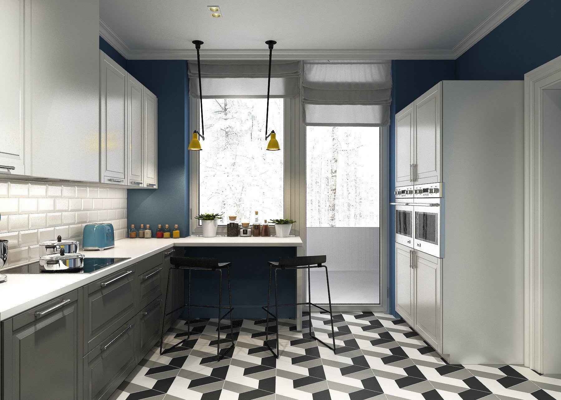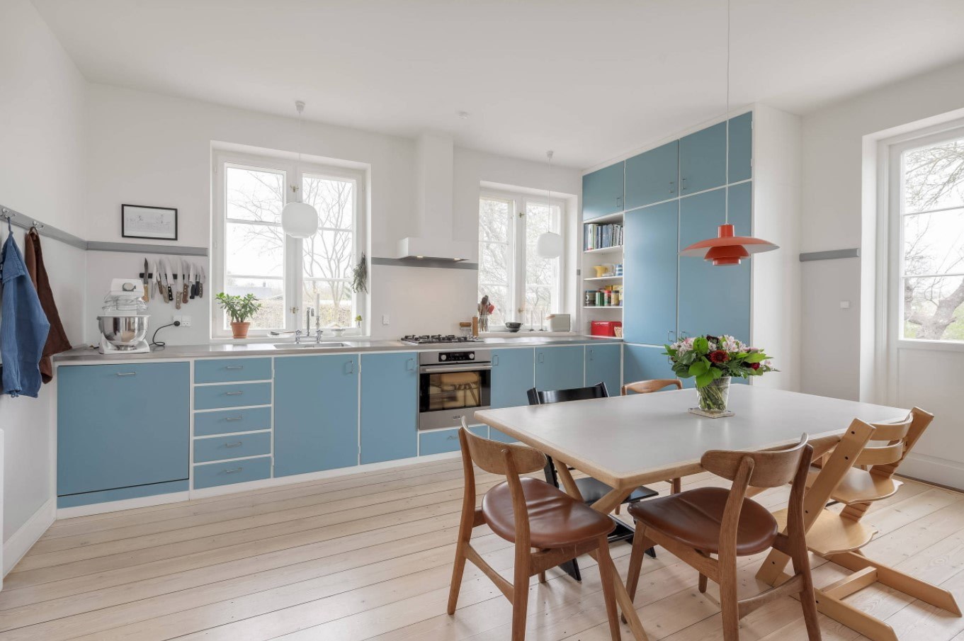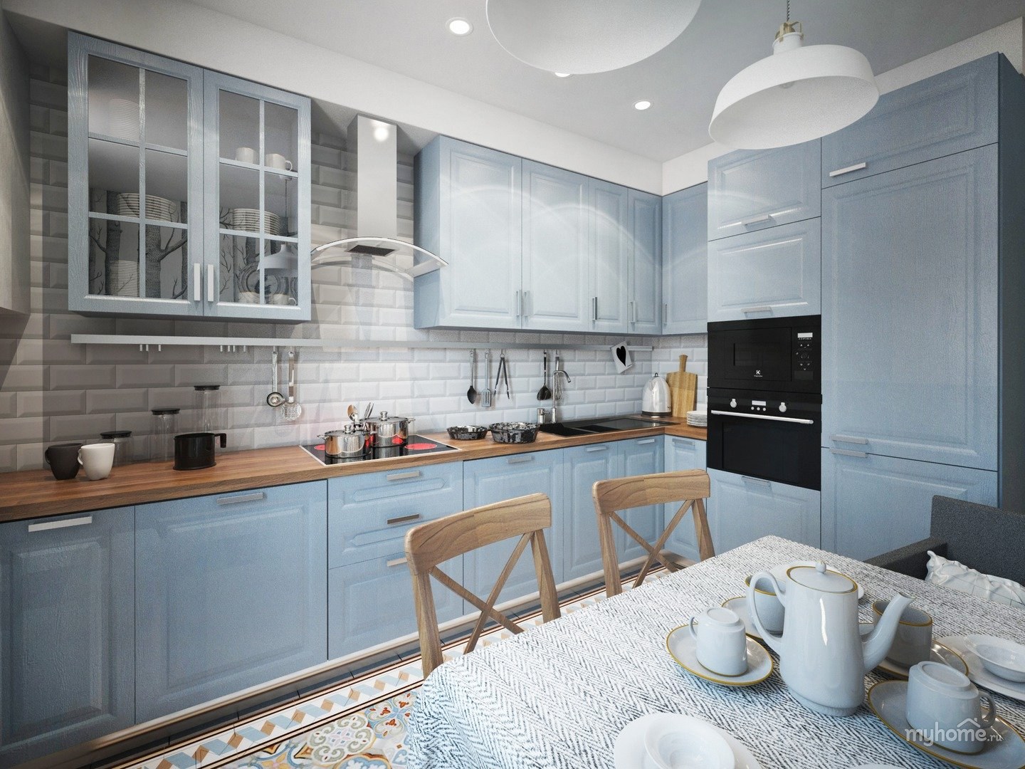 Серо голубая кухня в скандинавском стиле (32 фото)