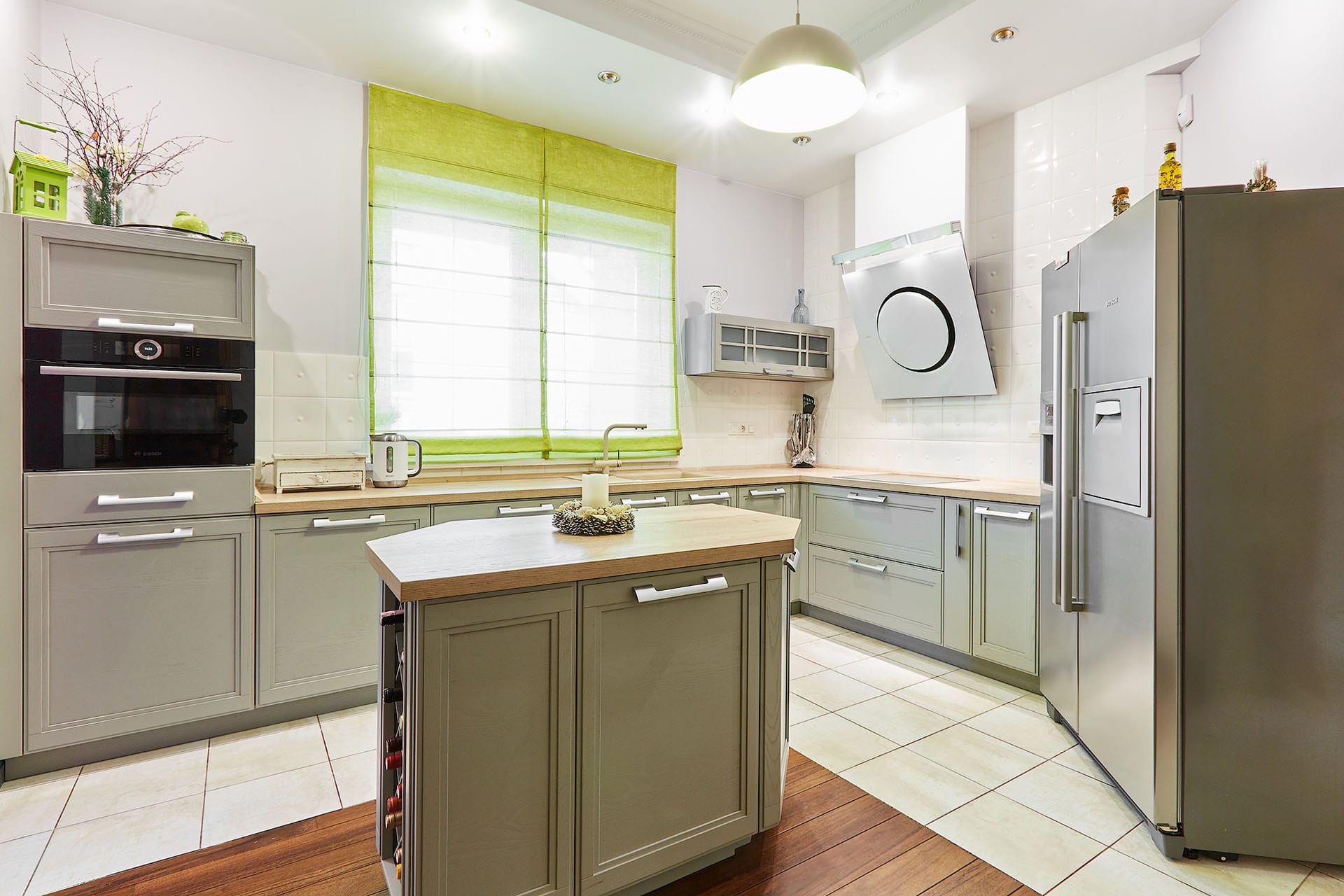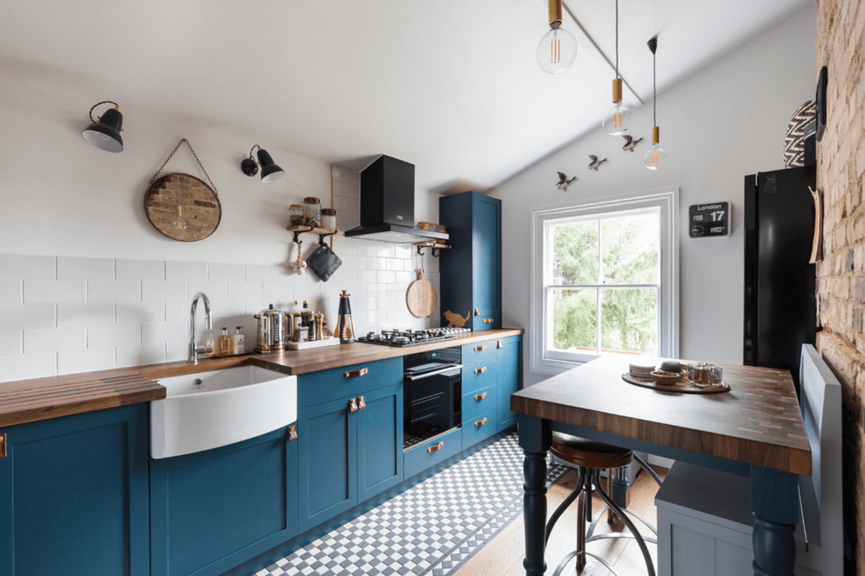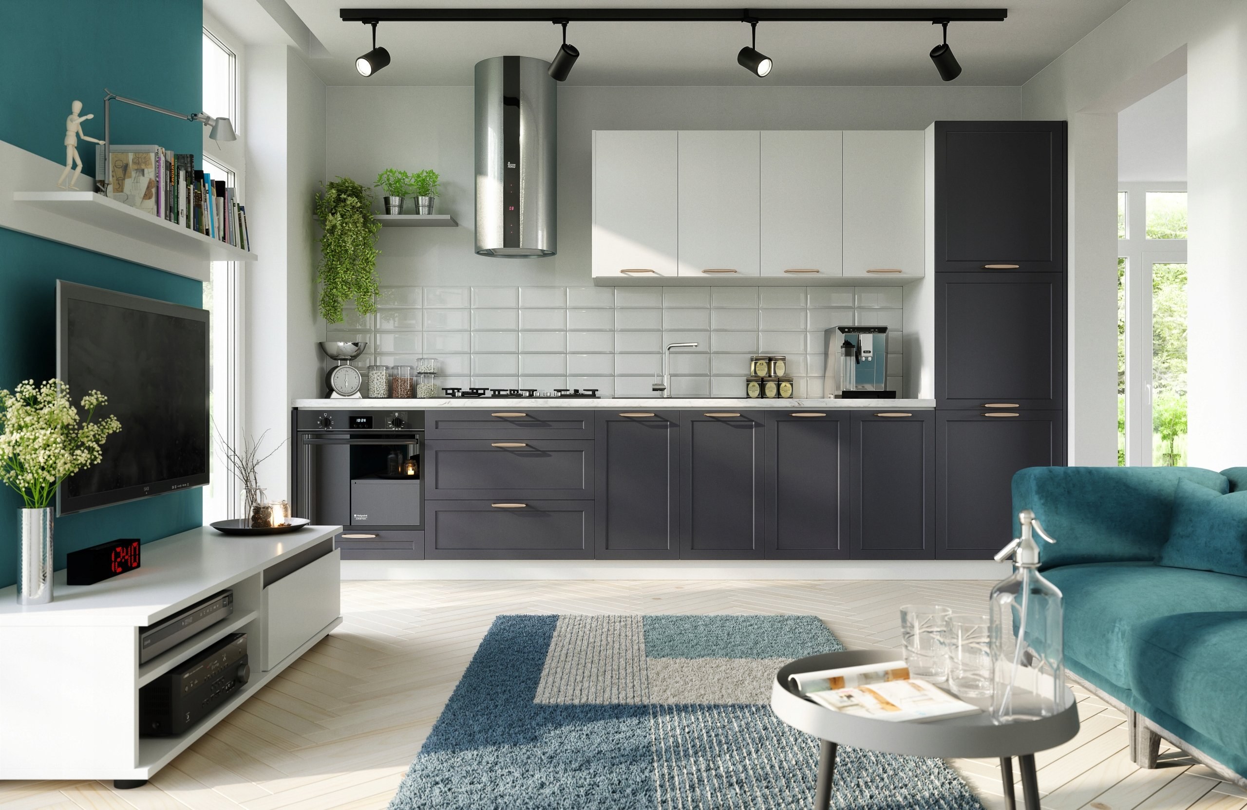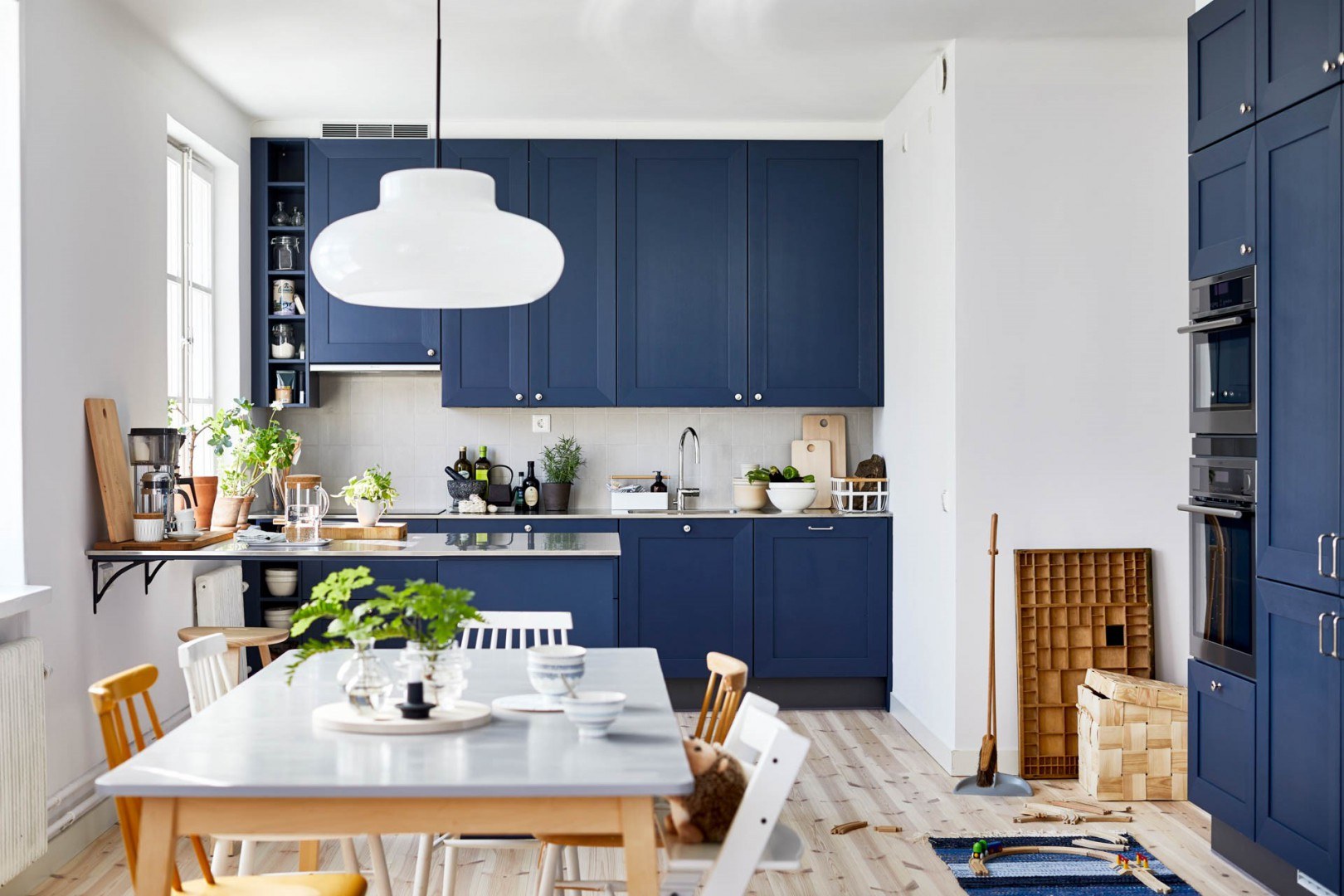 Серо голубая кухня в скандинавском стиле (32 фото)