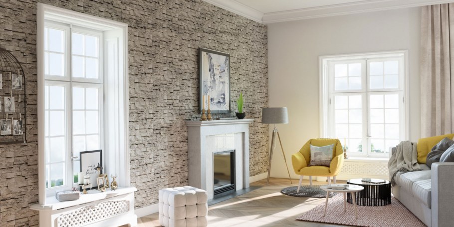 Сочетание кирпичиков с обоями