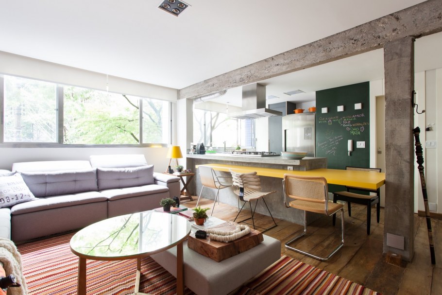 Кирпич в интерьере гостиной совмещенной с кухней (45 фото)