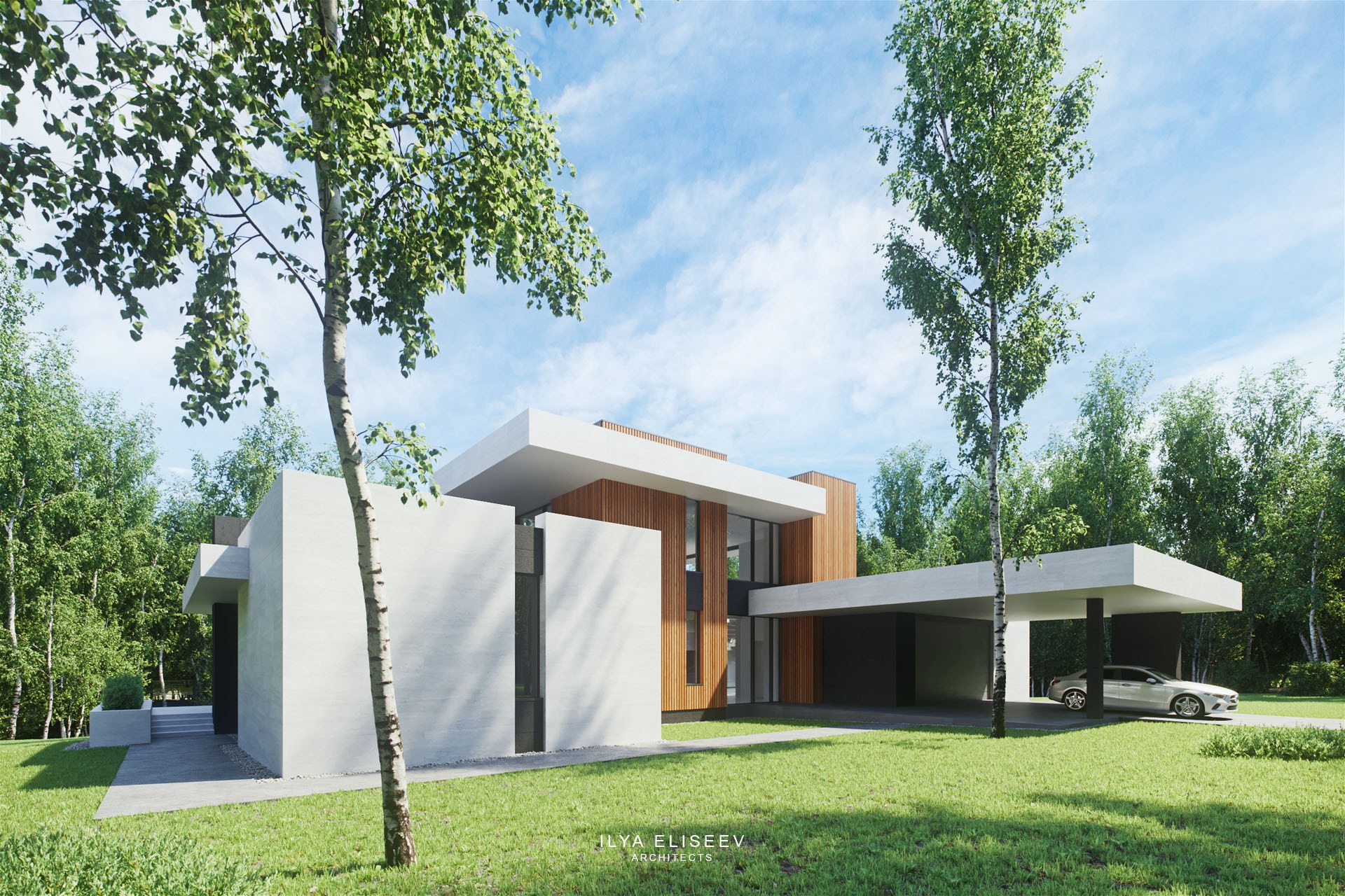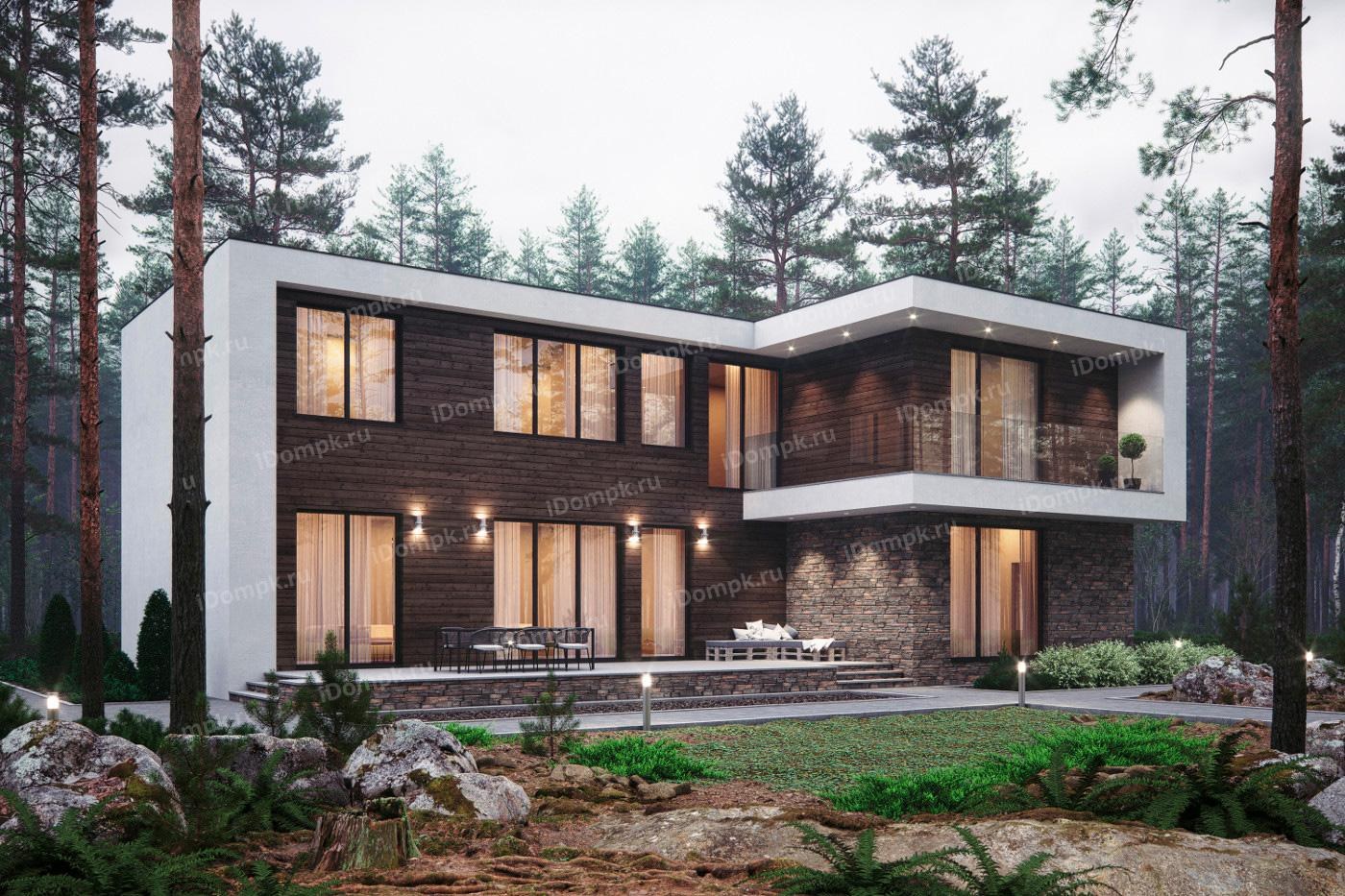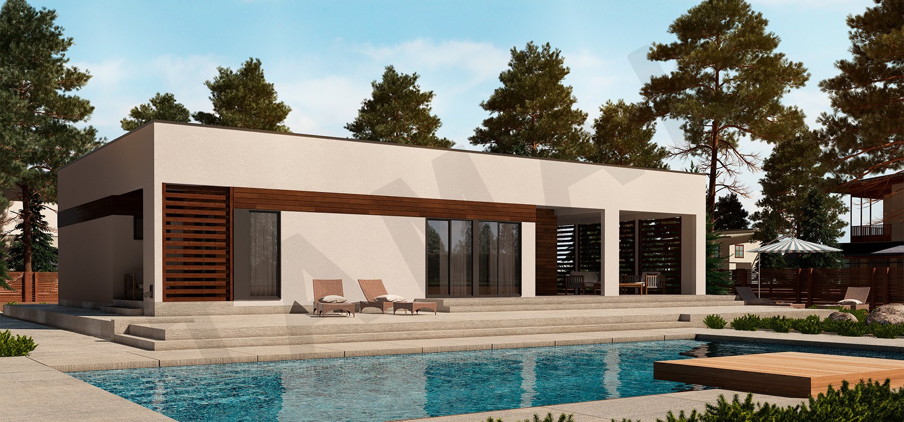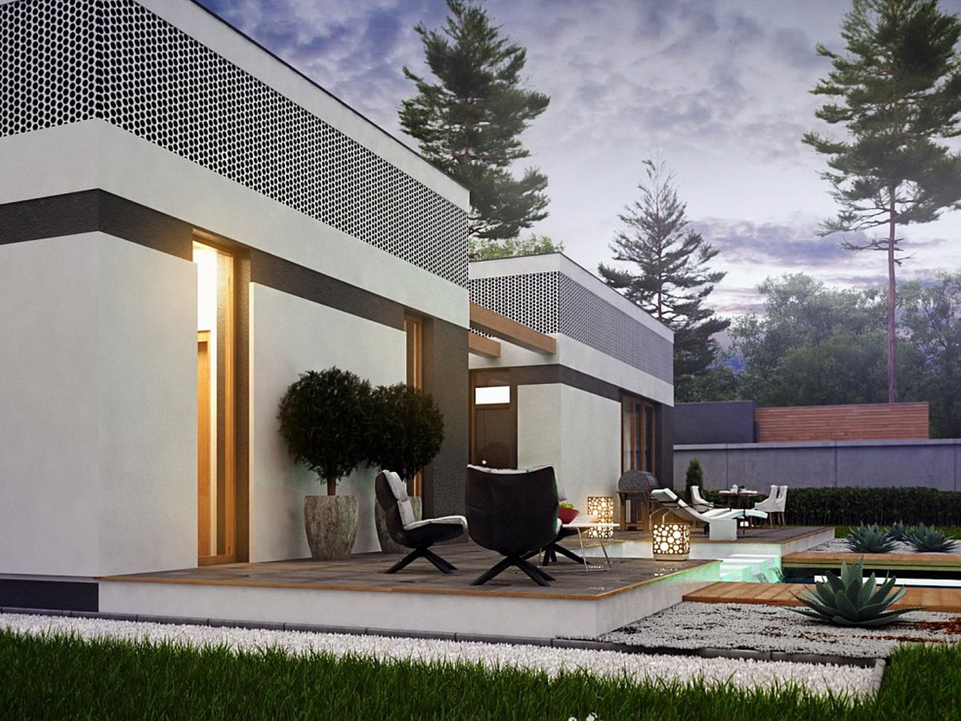 Одноэтажный дом с плоской крышей в стиле Минимализм