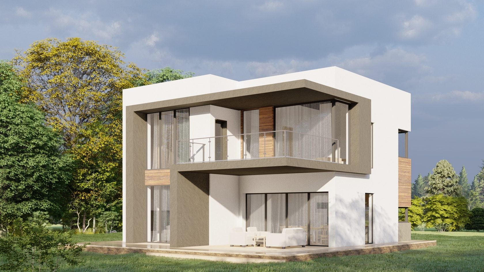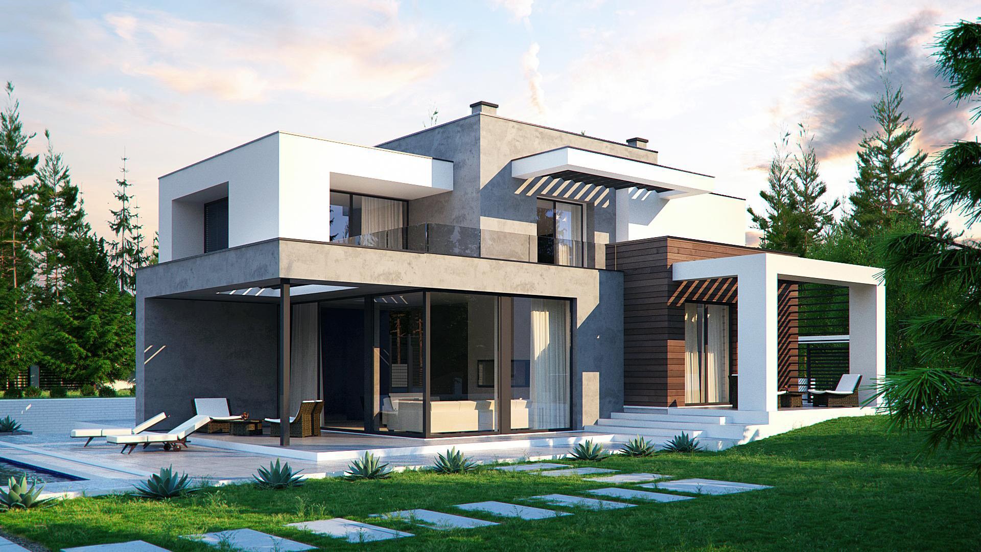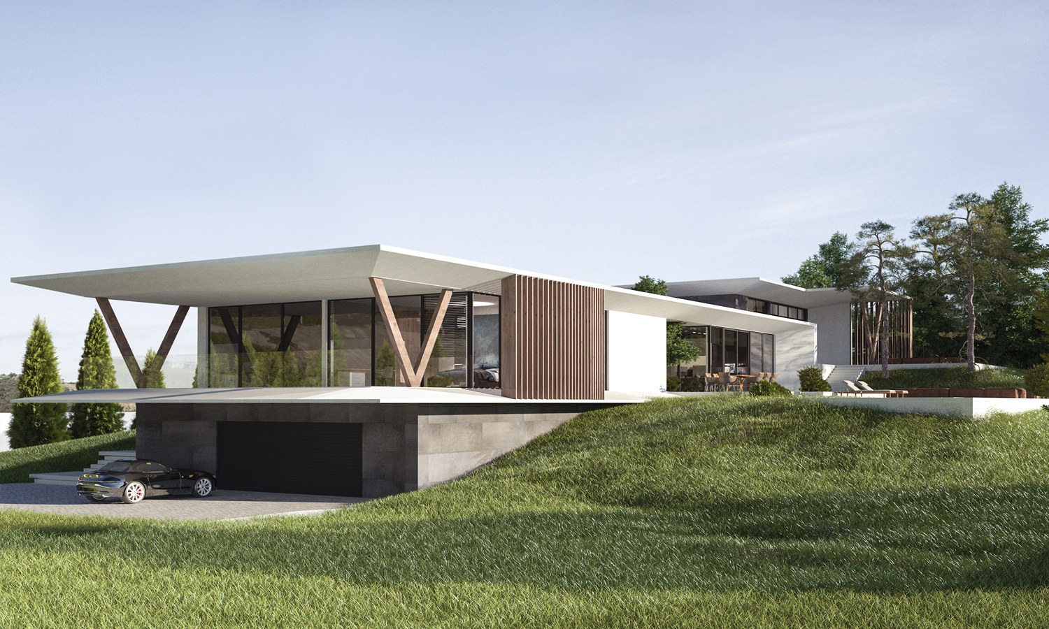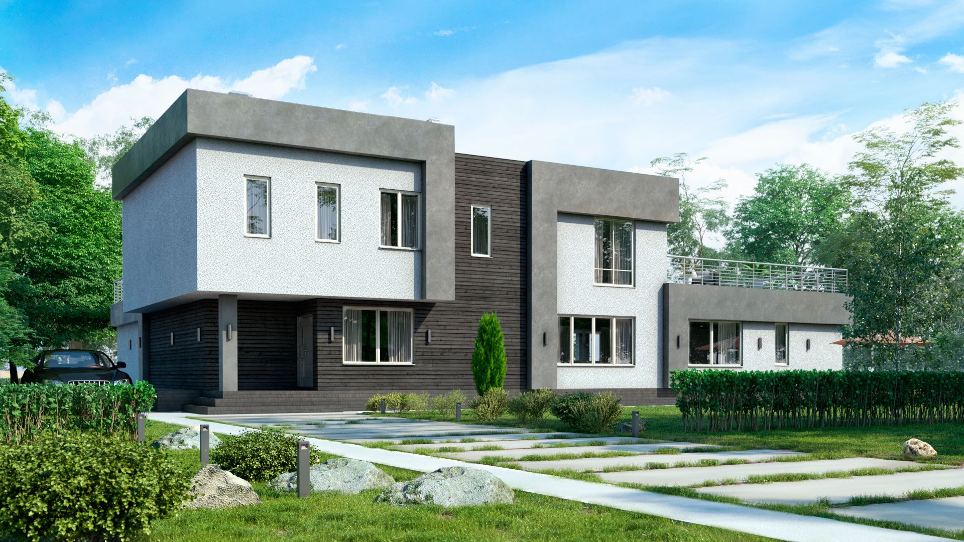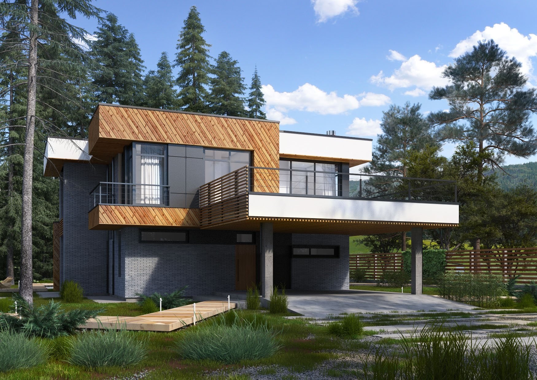 Одноэтажный дом с плоской крышей в стиле Минимализм