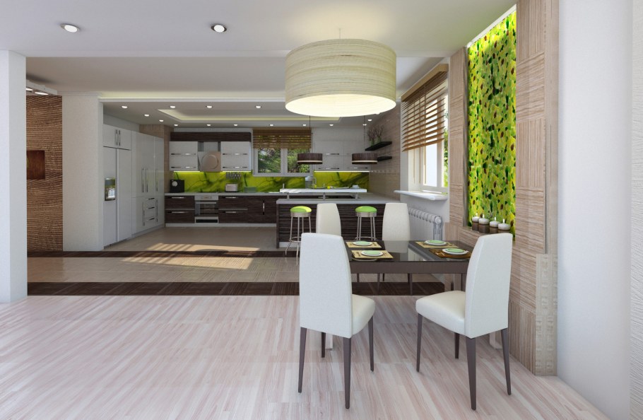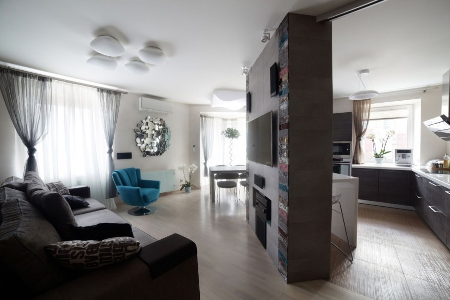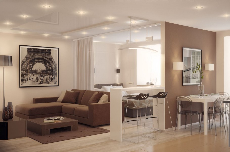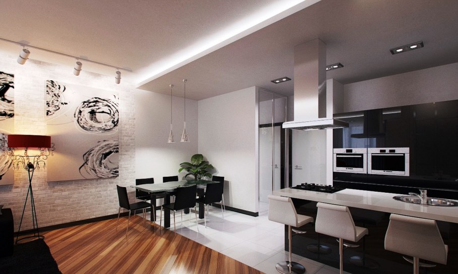 Зонирование кухни и гостиной барной стойкой