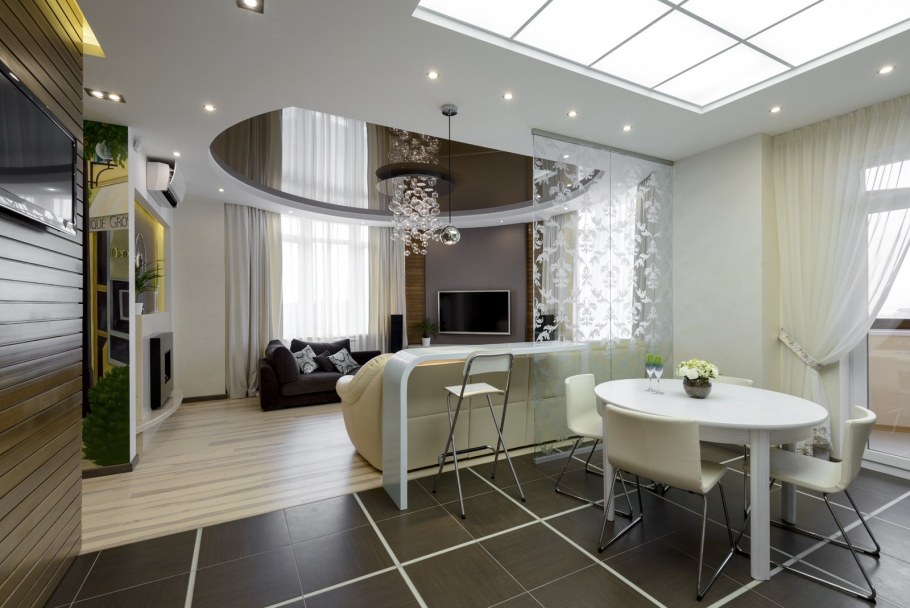 Подвесной потолок кухня гостиная