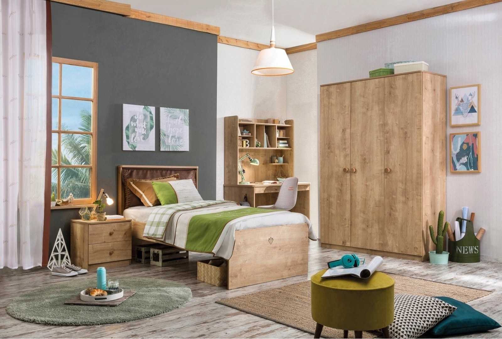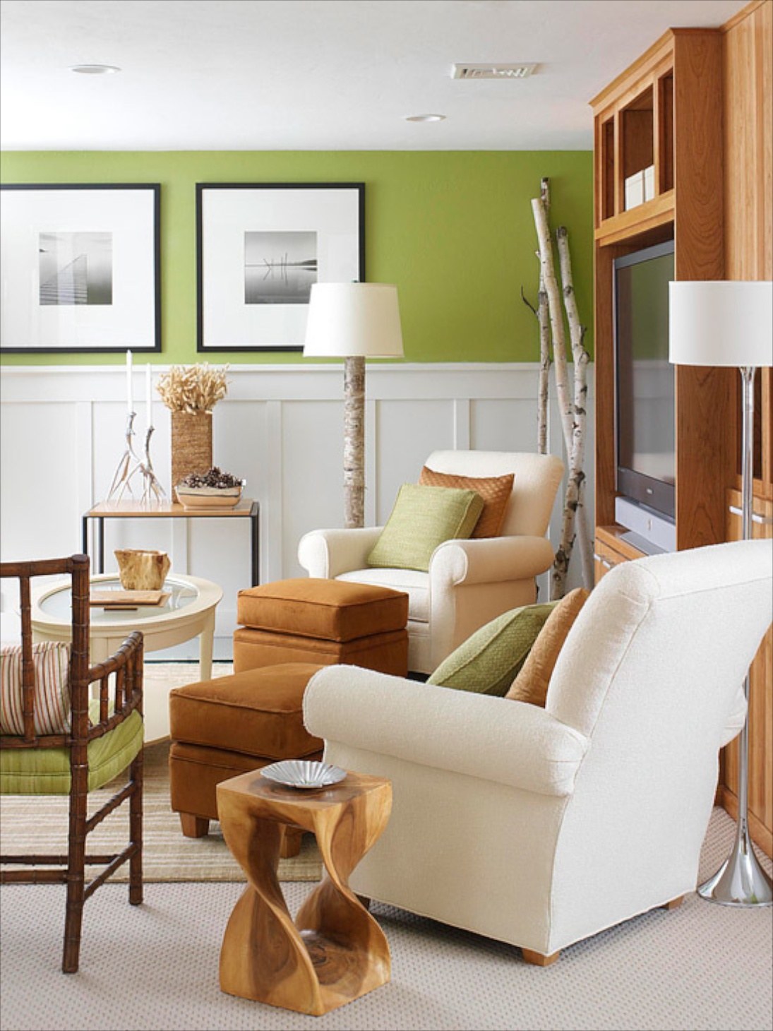 Сочетание зеленого и дерева в интерьере