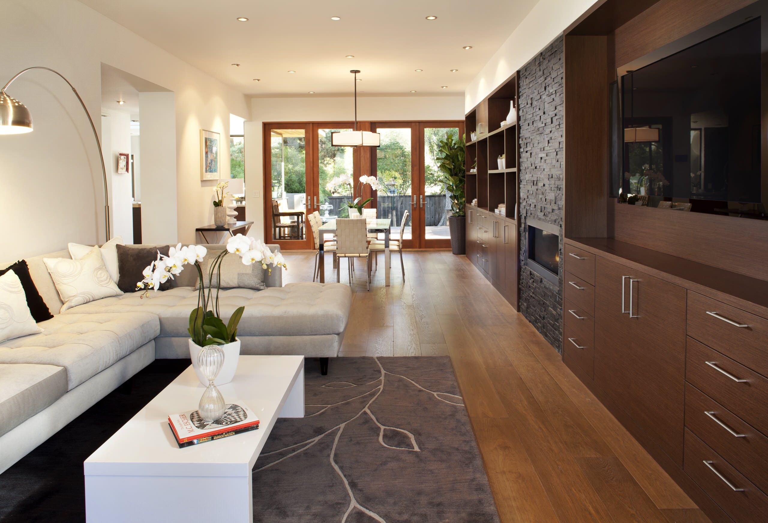 Интерьер гостиной в древесных тонах