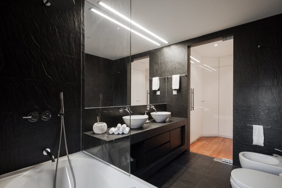 Ванная в темных тонах в минималистическом стиле