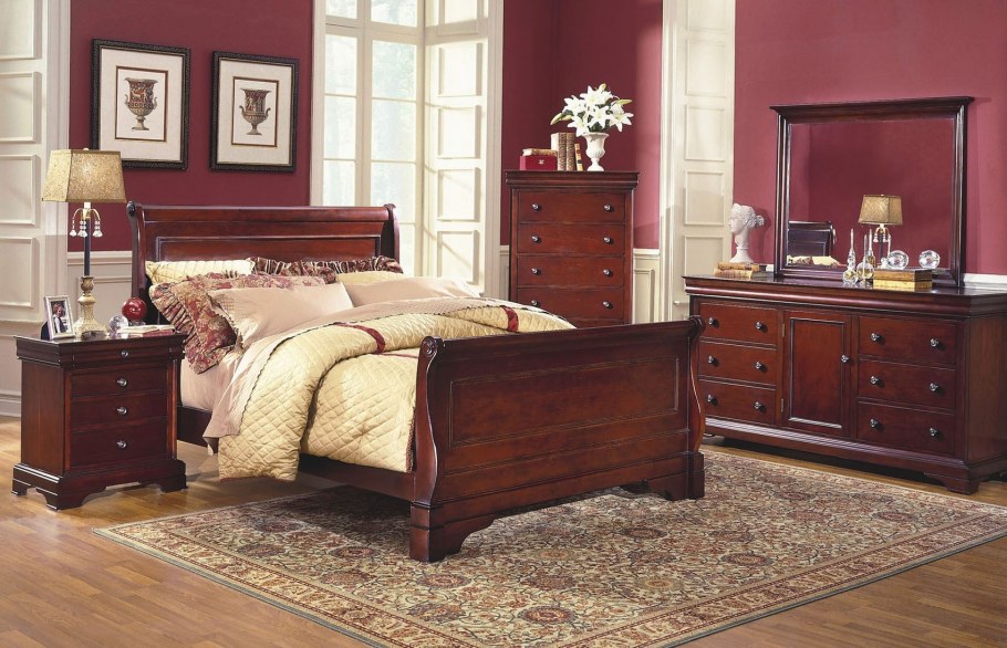 Мебель цвета вишня в интерьере спальни (40 фото)