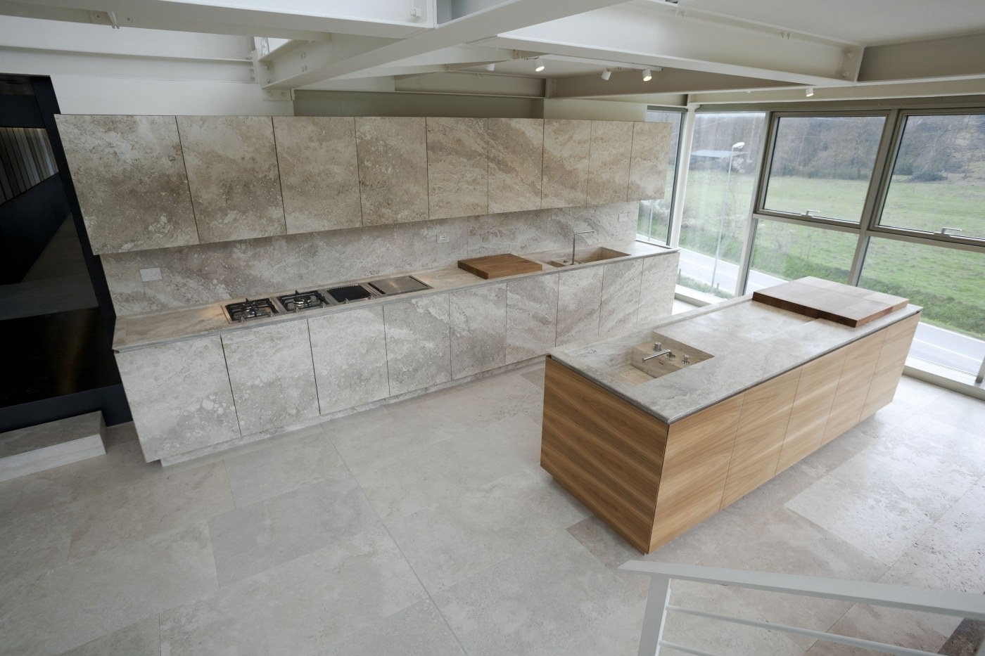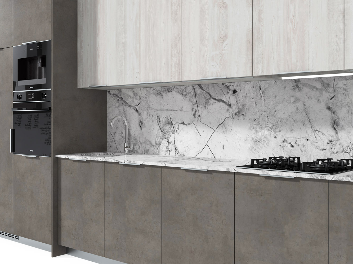 Серая кухня с мрамором