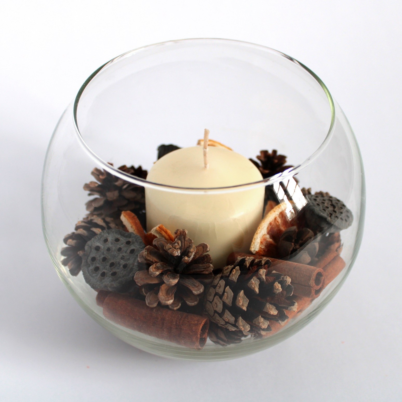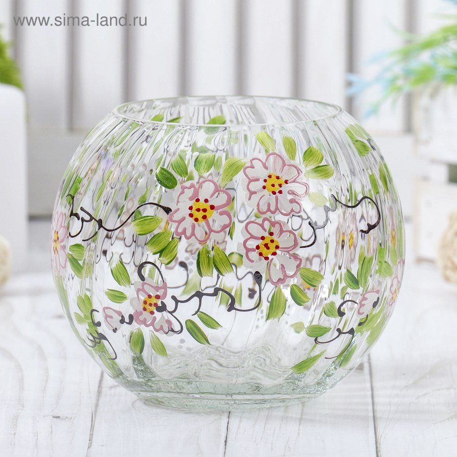 Ваза-шар стеклянная "классика" с белой свечой, 12×10 см 4534519