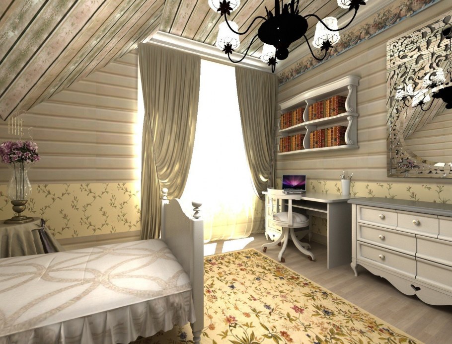 Мансардная комната в стиле Прованс