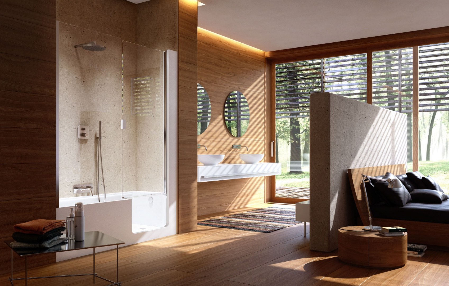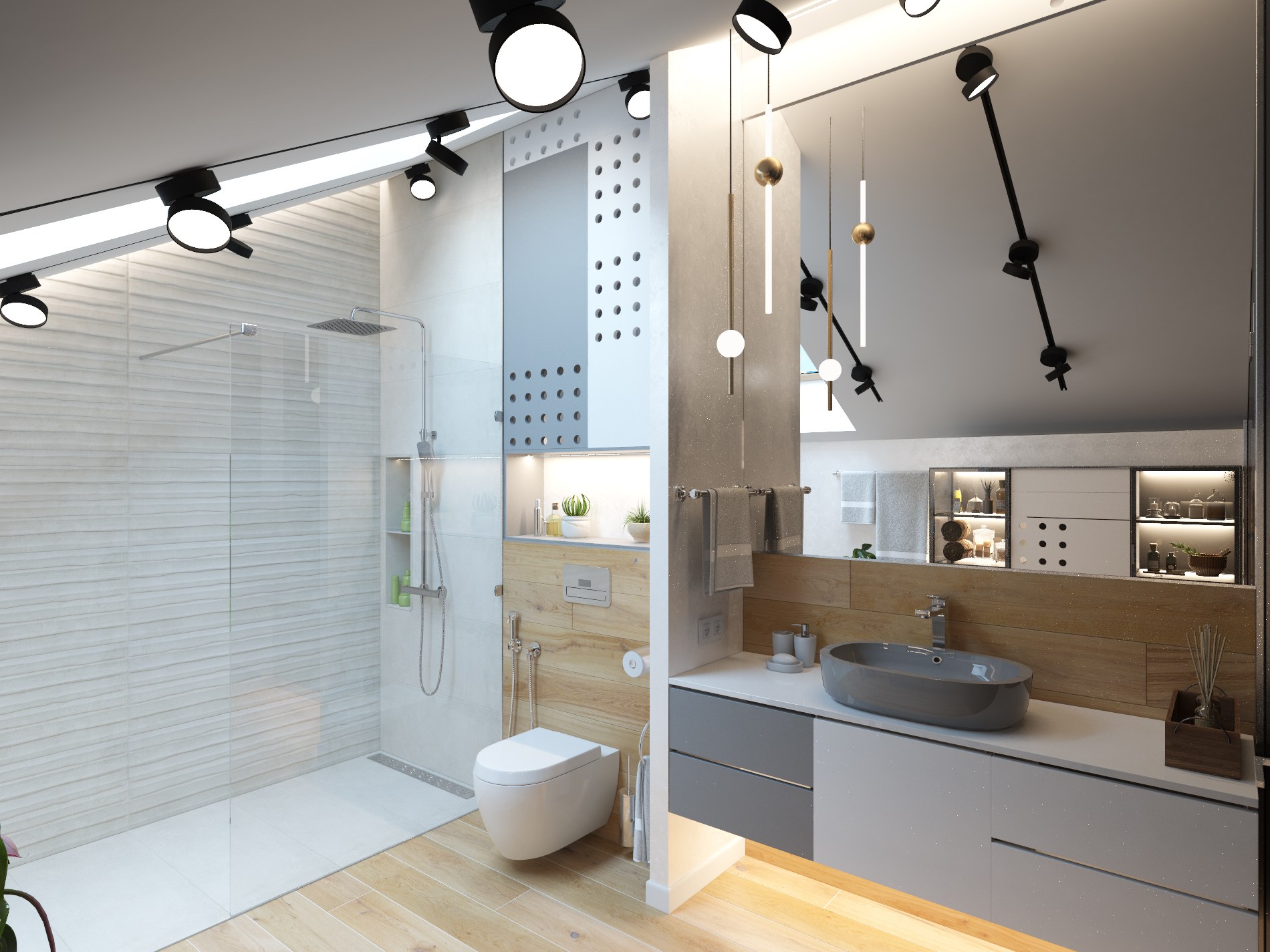 Душевая с элементами дерева