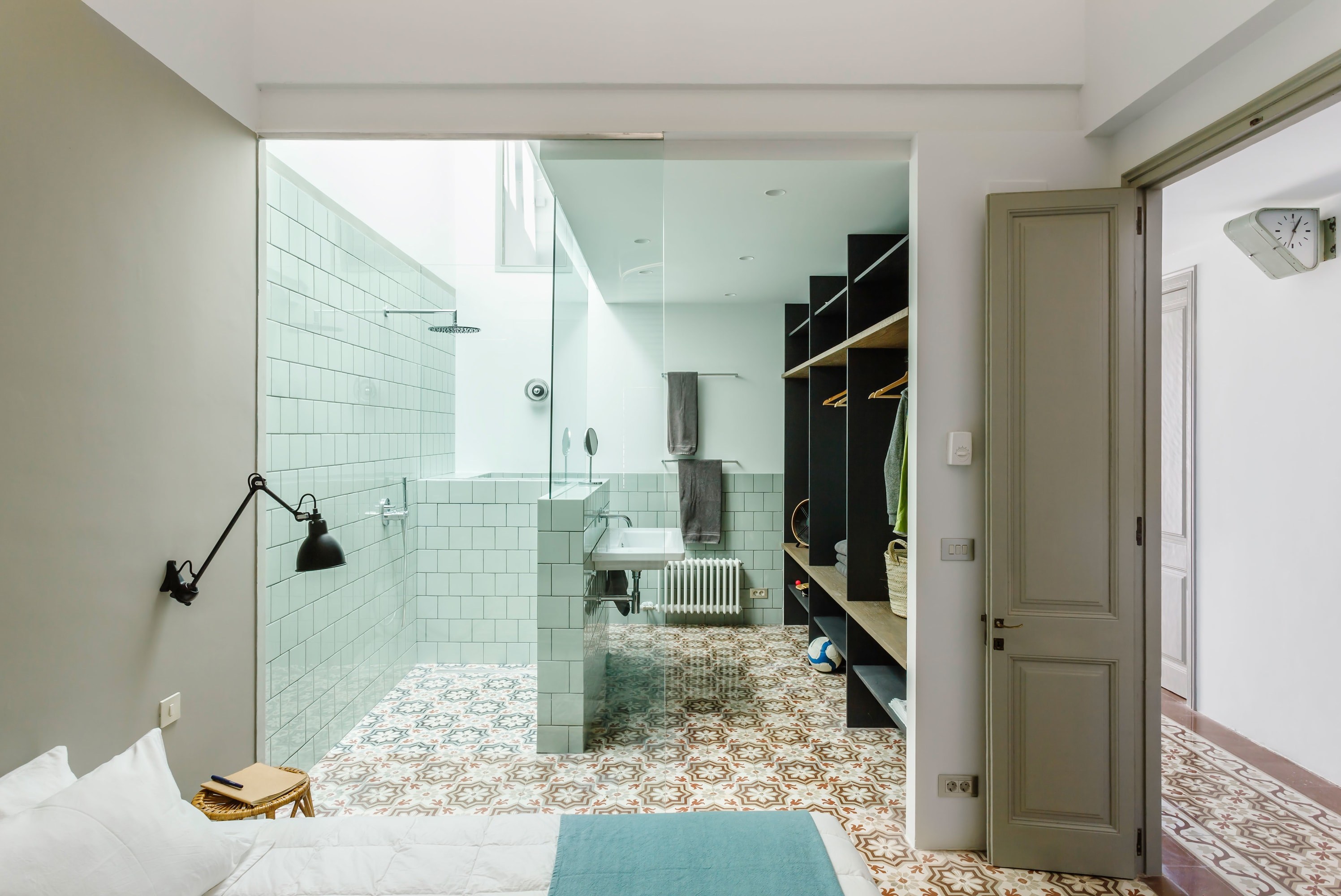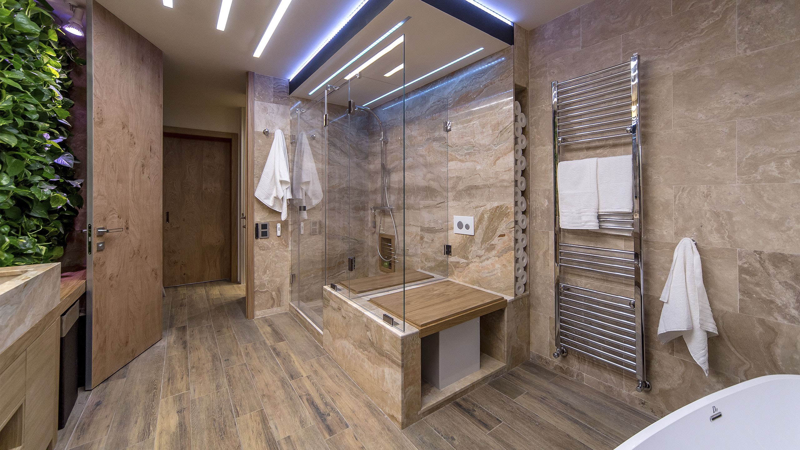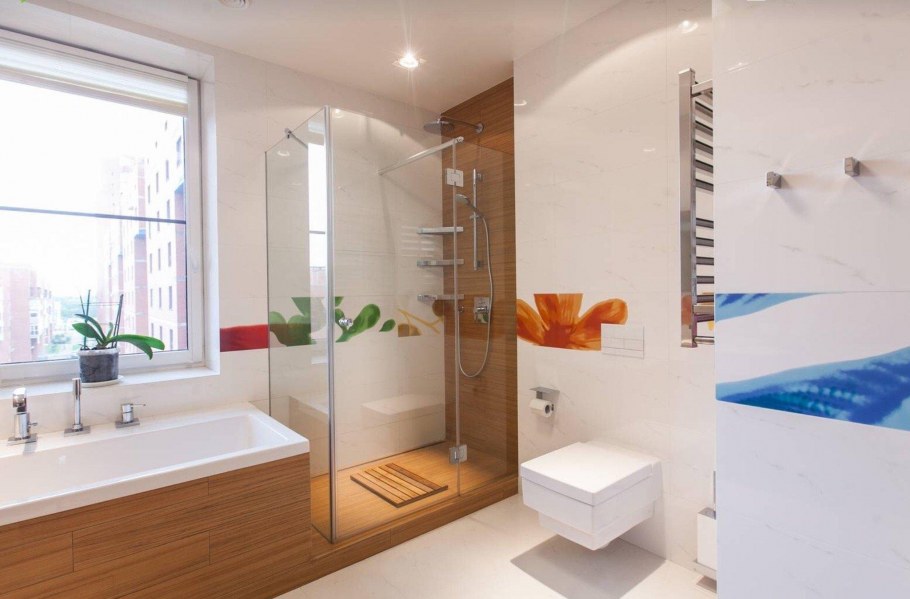 Душевая на всю стену в интерьере