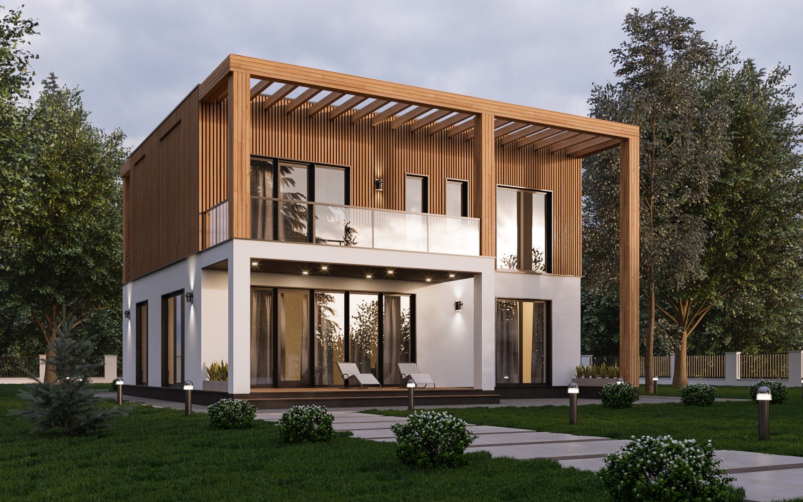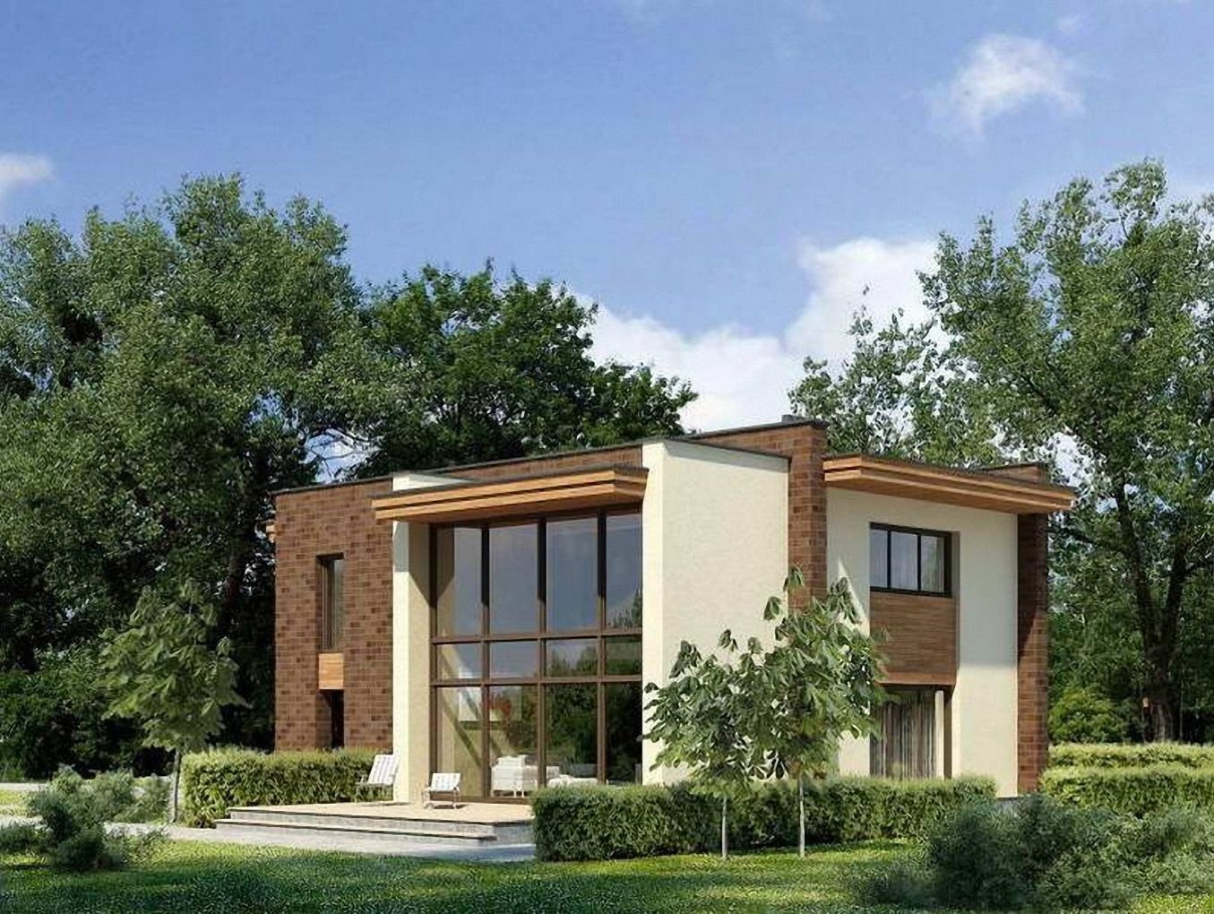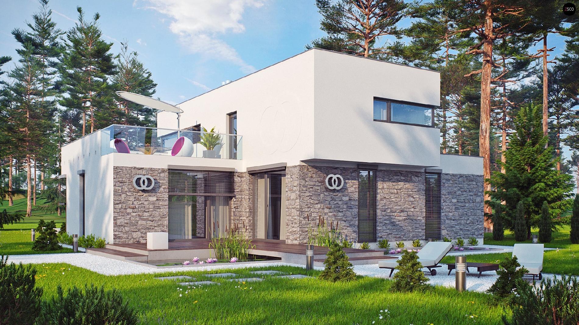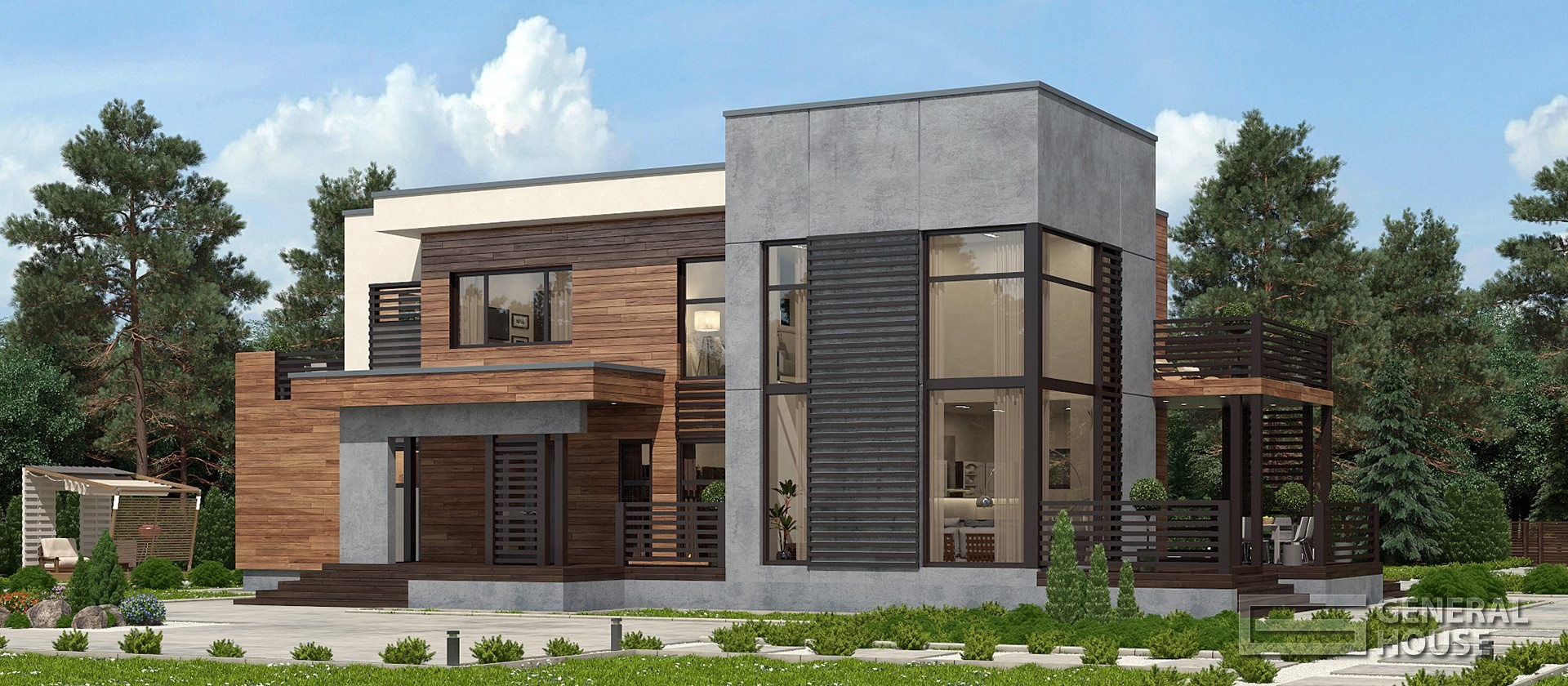 Zx108 современный двухэтажный дом с большой площадью остекления.