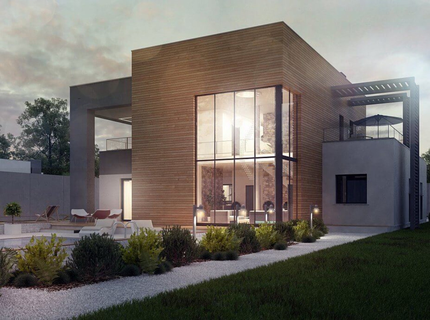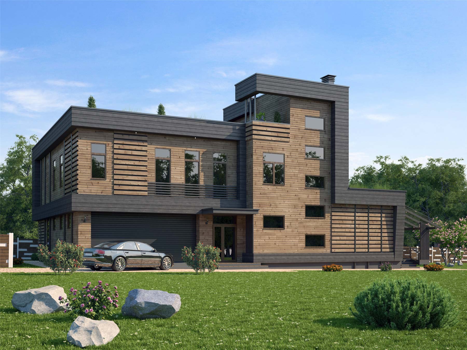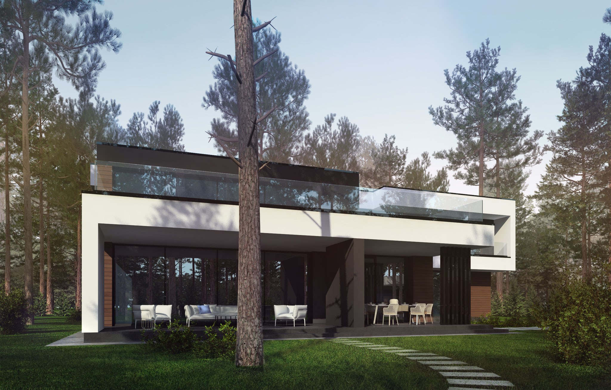 Zx108 современный двухэтажный дом с большой площадью остекления.