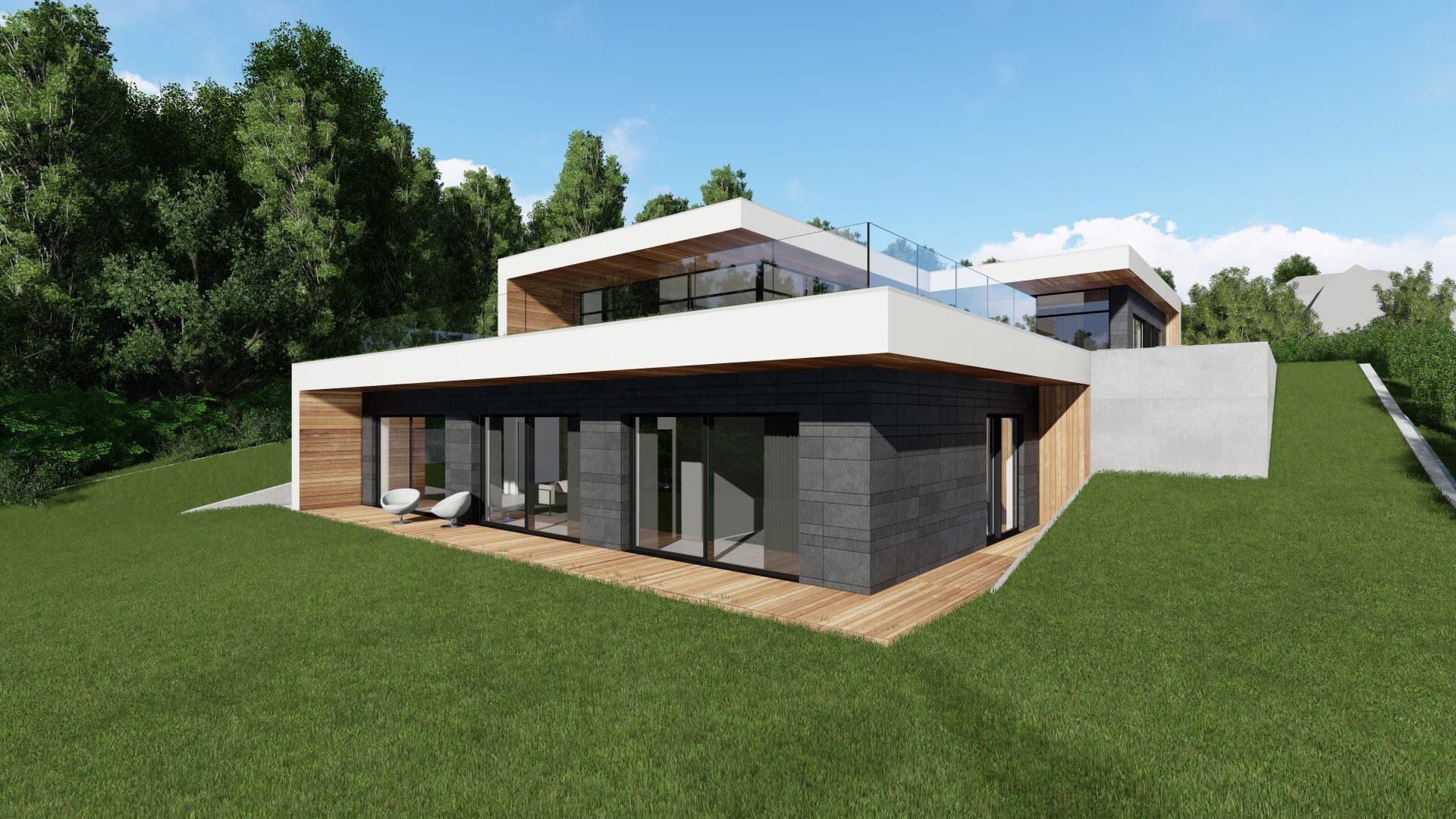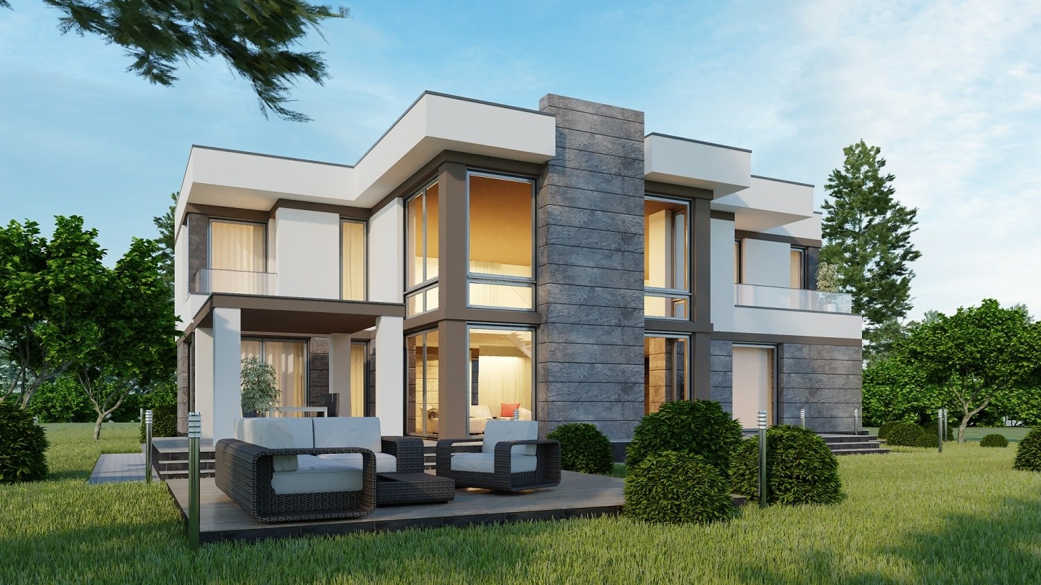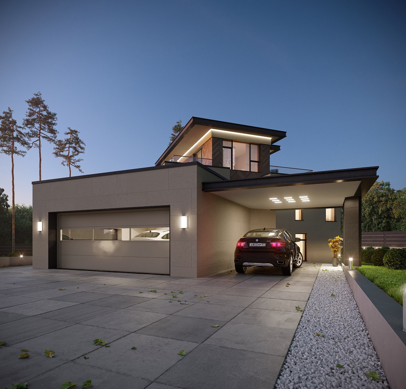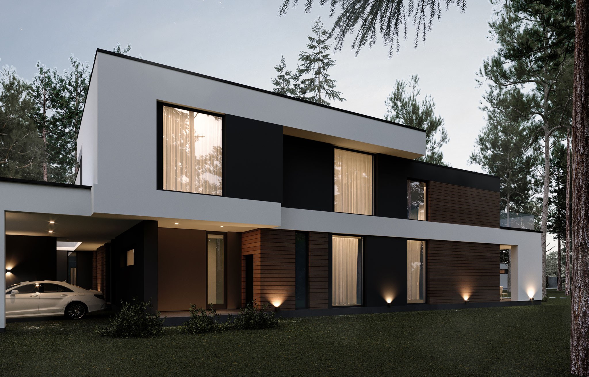 Zx108 современный двухэтажный дом с большой площадью остекления.