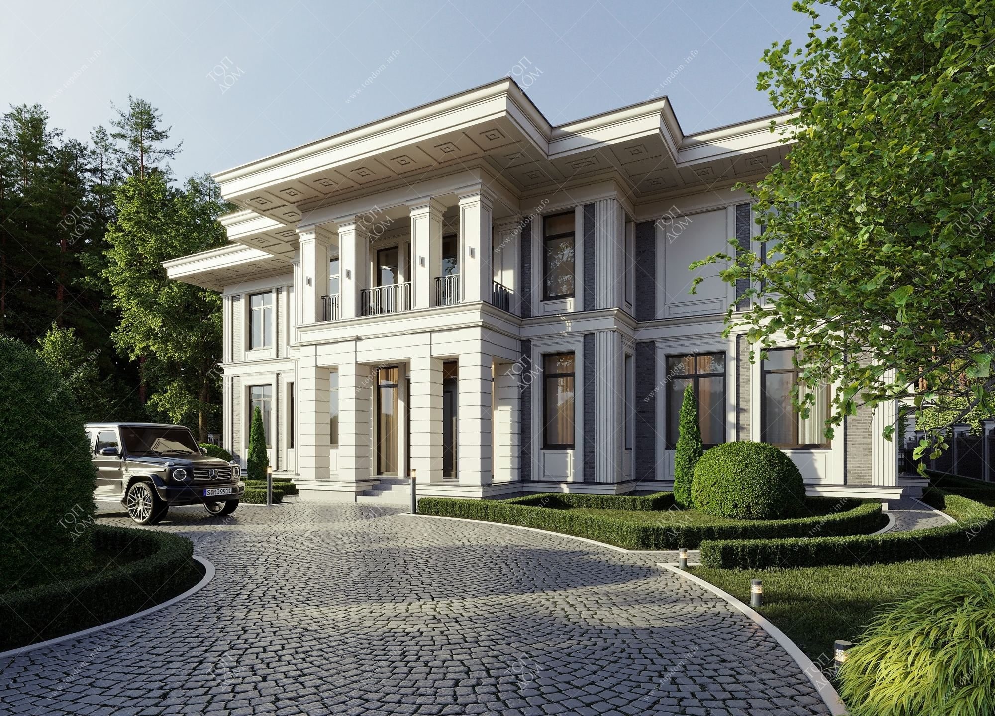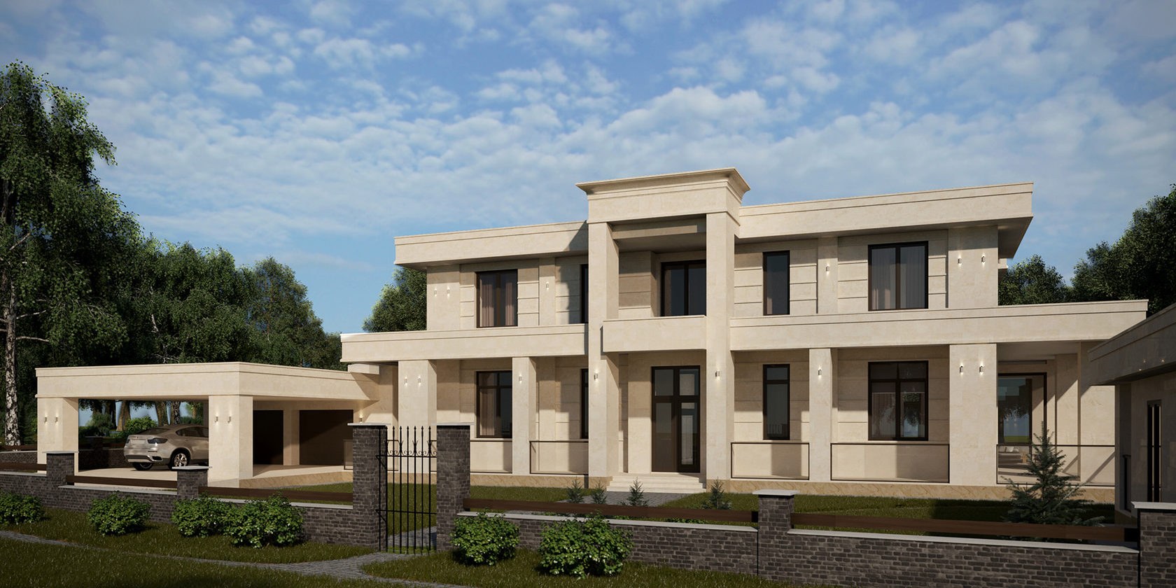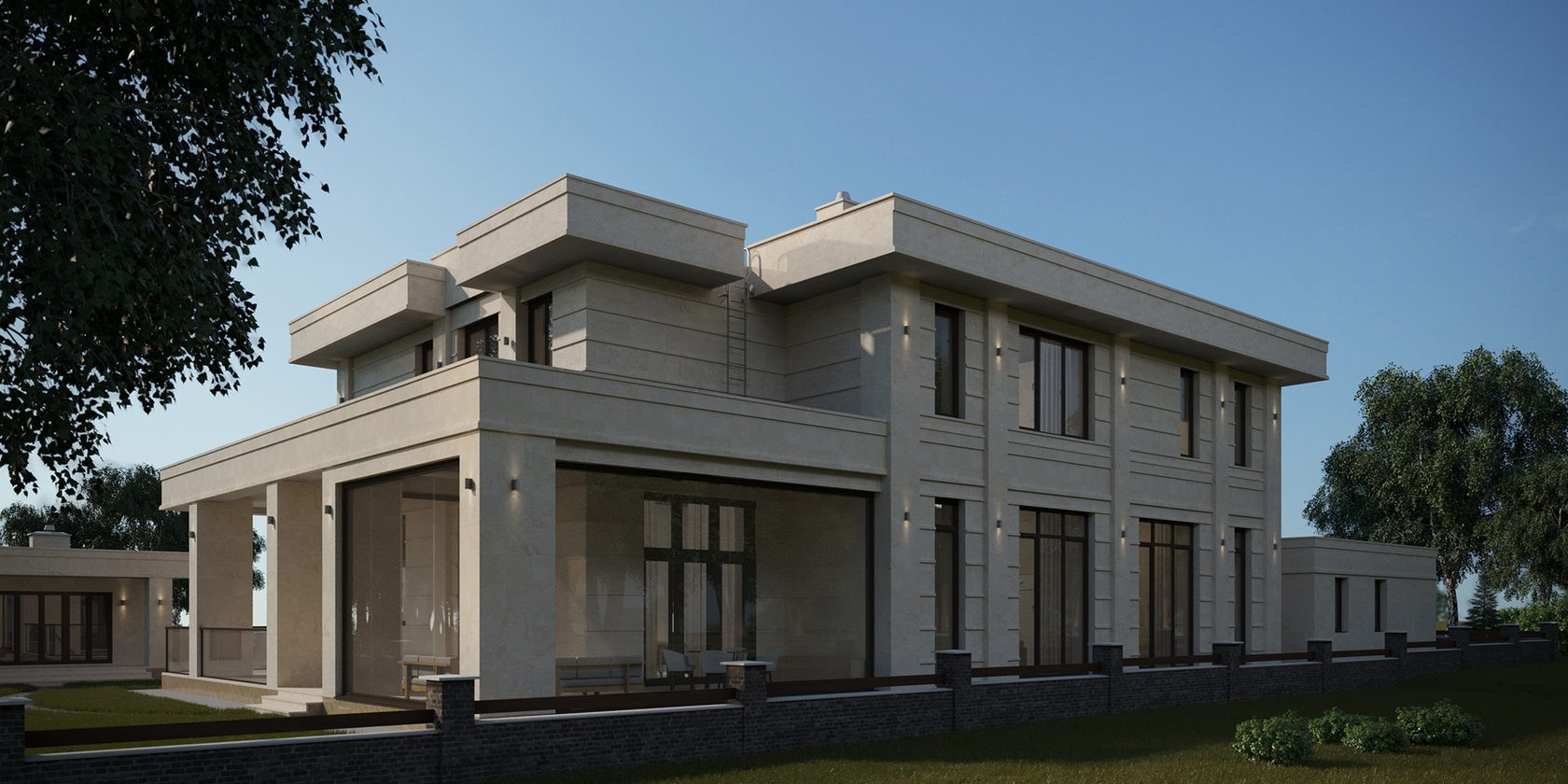 Двухэтажный дом в средиземноморском стиле с плоской крышей