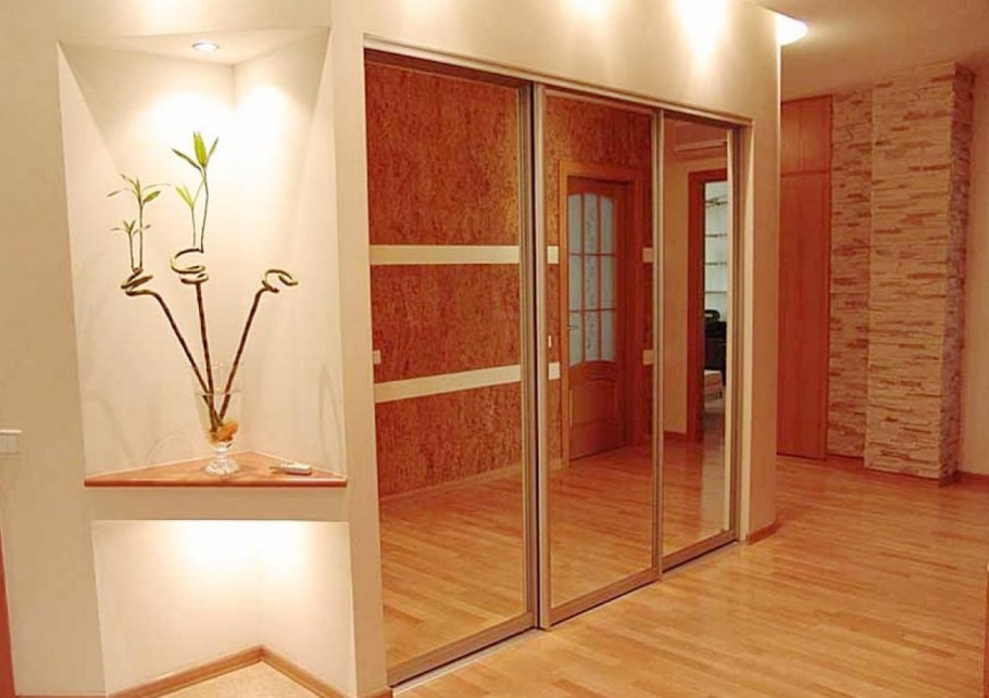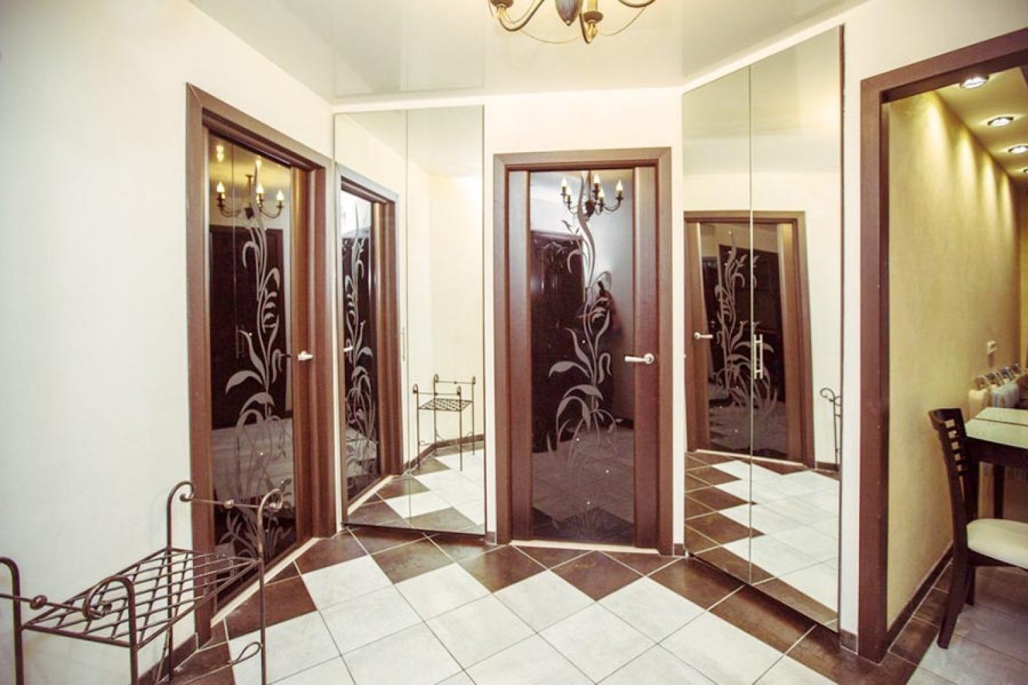 Зеркальная плитка с фацетом в интерьере прихожей классика