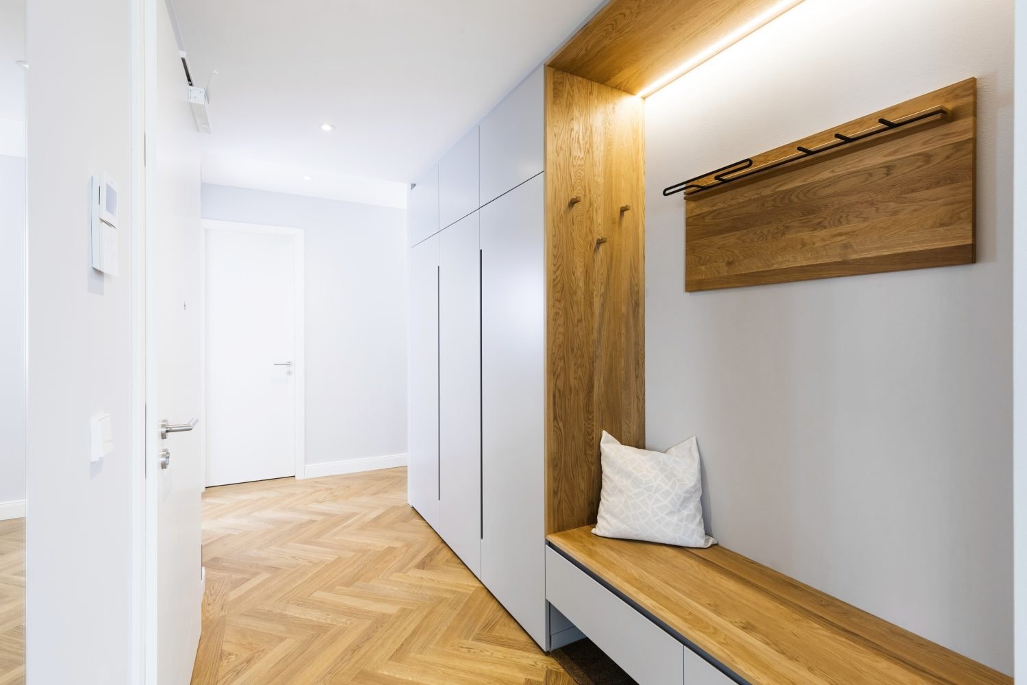 Прихожая вдоль стены