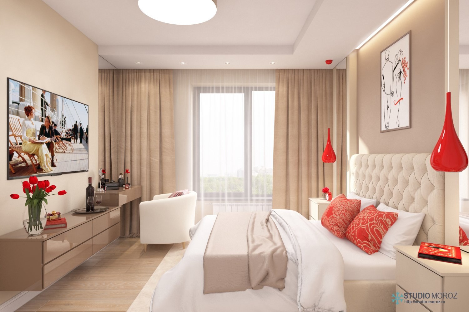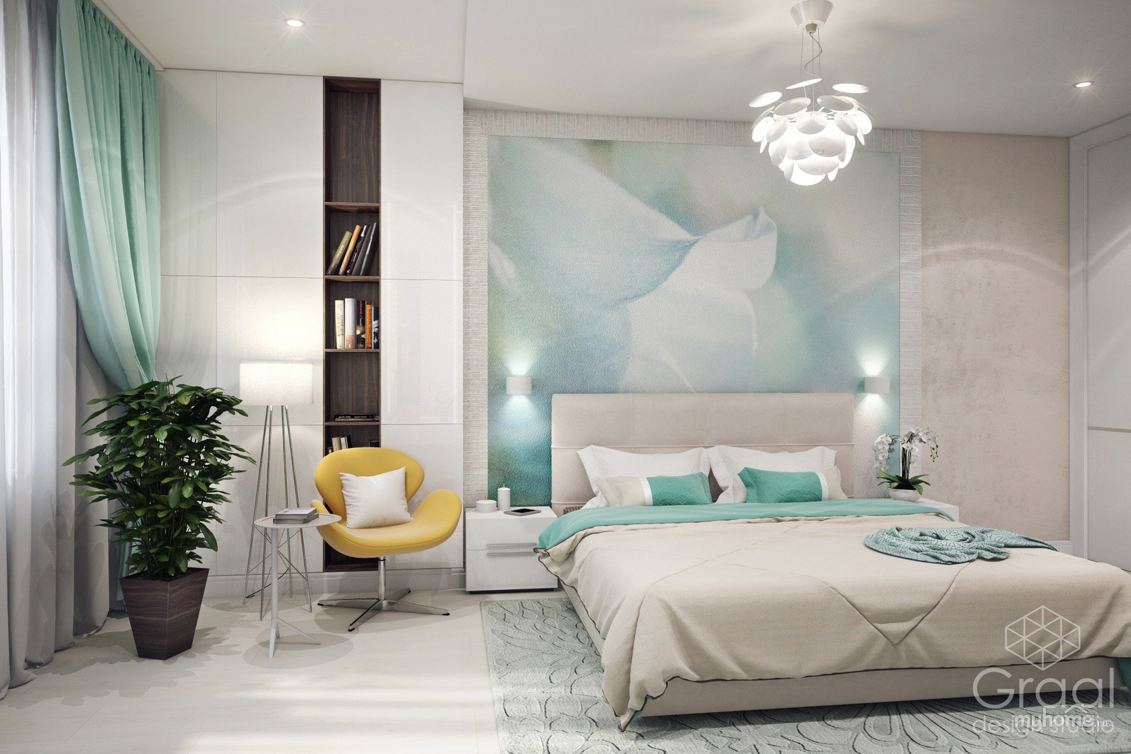 Дизайн спальни в светлых тонах с яркими акцентами (38 фото)